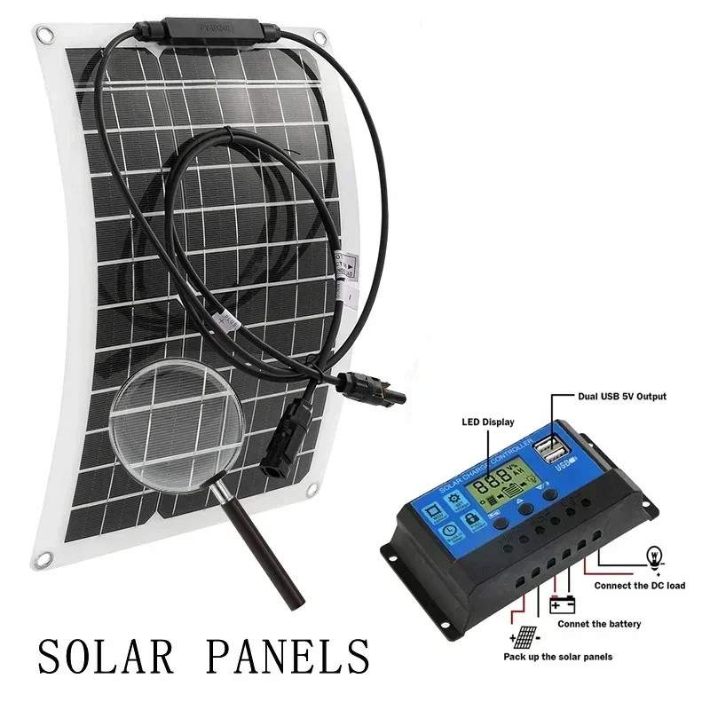 แผงโซลาร์เซลล์ 30 วัตต์ กันน้ำ สำหรับชาร์จโทรศัพท์ รถบ้าน รถยนต์ เครื่องเล่น MP3 แท็บเล็ต ใช้กลางแจ้ง สำรองพลังงานแบตเตอรี่