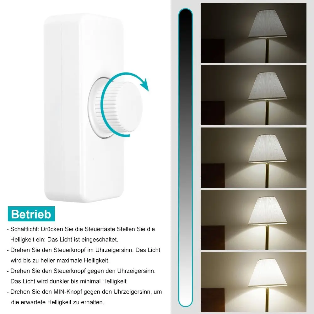 – หมุนปุ่มควบคุมทวนเข็มนาฬิกา แสงจะมืดลงจนถึงความสว่างขั้นต่ำ