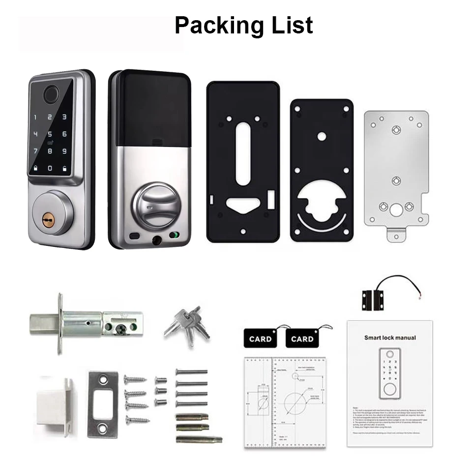 แอพ Tuya / แอพล็อค TT (ตัวเลือก) ลายนิ้วมือ การ์ด ปลดล็อคกุญแจเครื่องกล; ใช้งานง่ายไม่ว่าเด็กหรือผู้ใหญ่ไม่ต้องกังวลลืมนำกุญแจมาด้วย