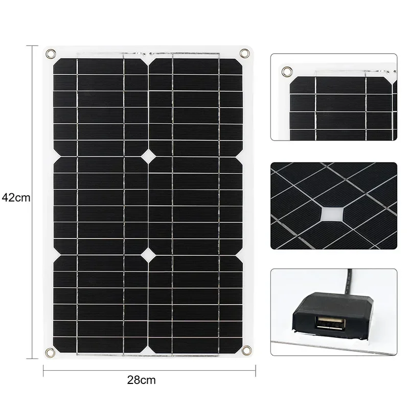 แผงโซลาร์เซลล์แบบยืดหยุ่น 10W/20W/40W DC12-18V กันน้ำ แผงโซลาร์เซลล์แบบโมโนคริสตัลไลน์ สะดวกสำหรับการชาร์จโทรศัพท์ แท็บเล็ต และแล็ปท็อป