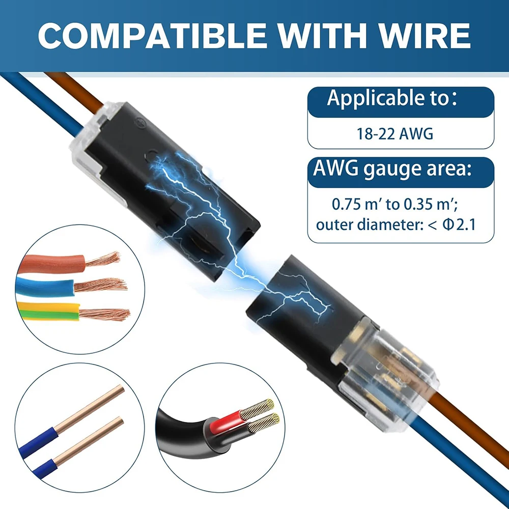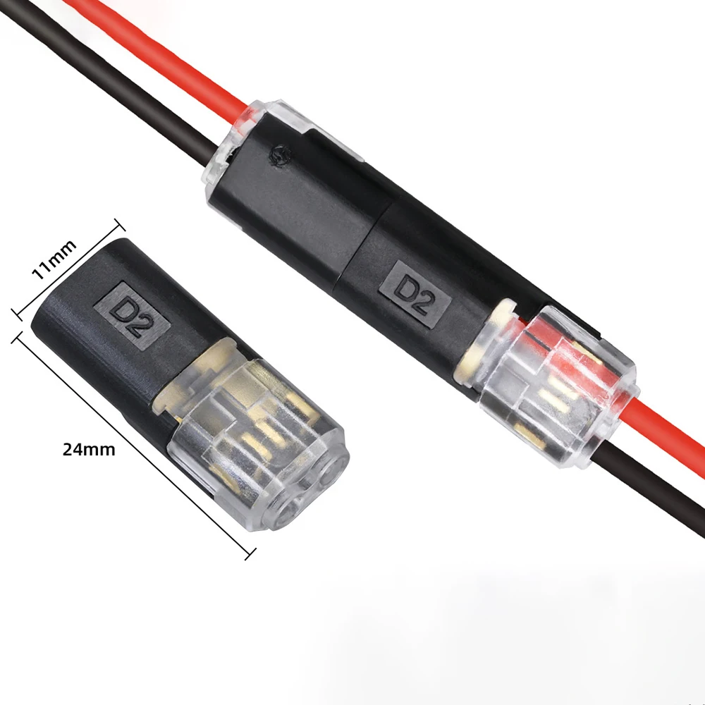 ขั้วต่อสายไฟแบบกันน้ำ 2 ขา 100/200 ชิ้น สำหรับรถยนต์ สายไฟ ขั้วต่อสายไฟฟ้าแบบแถบ
