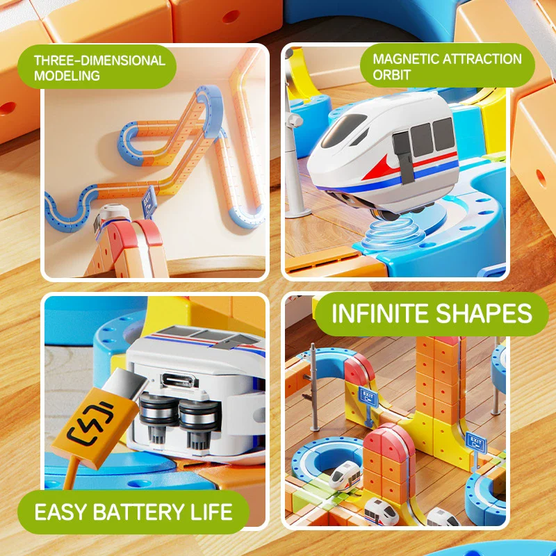 ผลิตจากวัสดุคุณภาพสูง ปลอดภัยสำหรับเด็ก มาพร้อมสีสันสดใสและแม่เหล็กที่แข็งแรงเพื่อยึดรางให้อยู่ในตำแหน่งอย่างมั่นคงผ่านการทดสอบความปลอดภัยอย่างเต็มที่ ไม่มีอันตรายจากการสำลัก