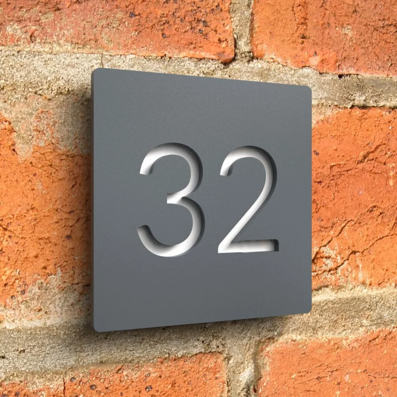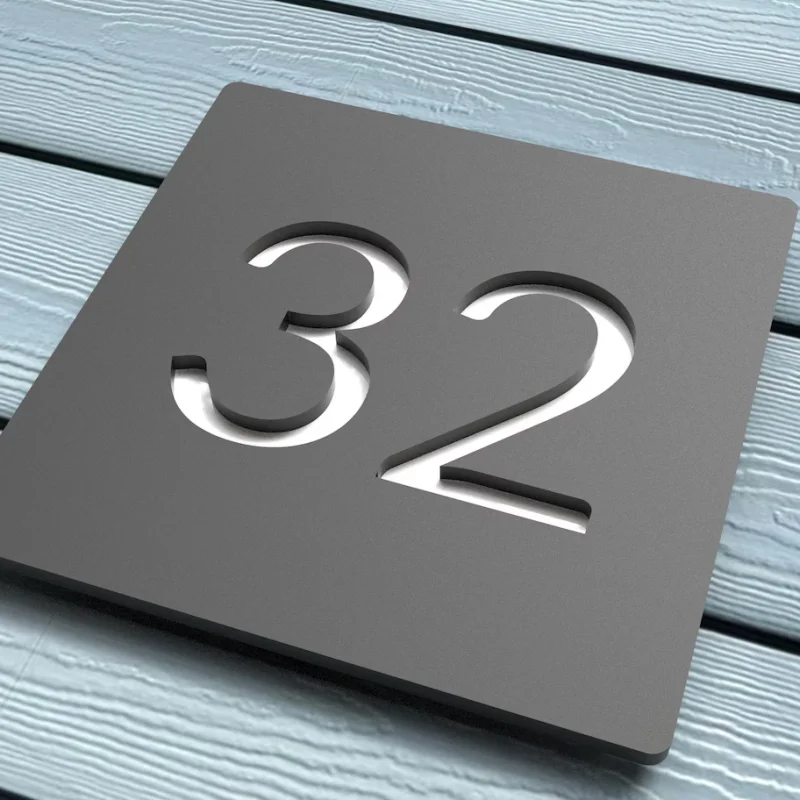 1.ป้ายบ้านสไตล์โมเดิร์นสุดล้ำเหล่านี้ถูกตัดด้วยเลเซอร์จากอะคริลิกสีดำด้าน พร้อมด้วยแผ่นอะคริลิกสะท้อนแสงที่สวยงาม