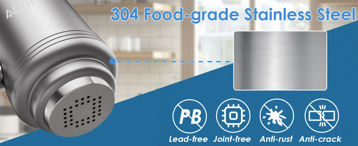 ALTHY ก๊อกน้ําสแตนเลสระบบเครื่องกรองน้ําประปาที่ผ่านการรับรอง NSF ช่วยลดสารตะกั่ว คลอรีน และรสชาติไม่ดีในครัว