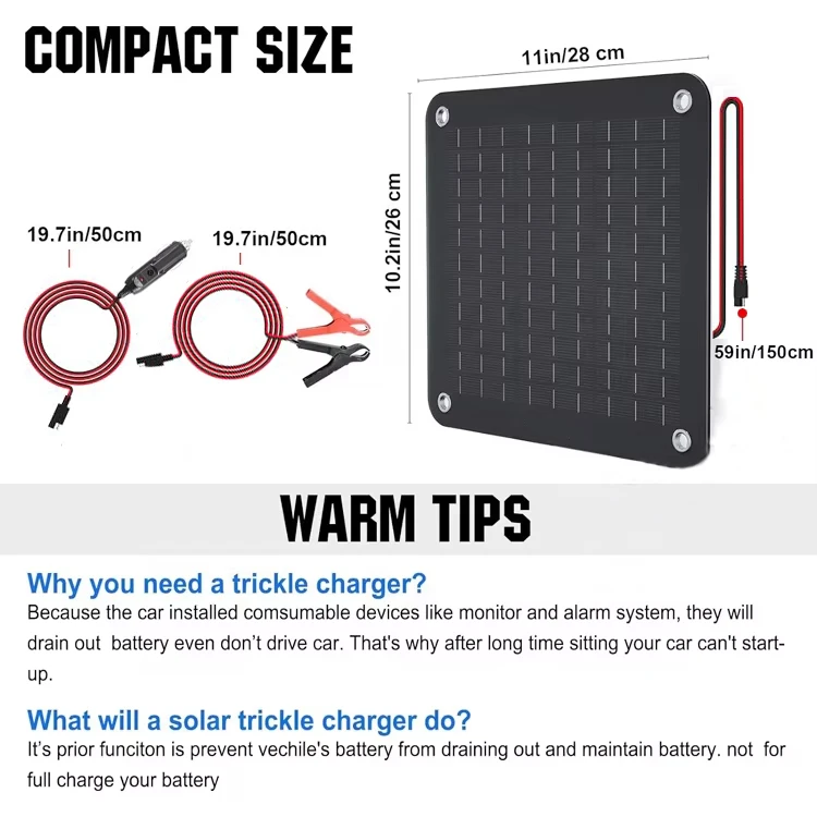 ชุดแผงโซลาร์เซลล์ 12V กันน้ำระดับ IP65 ประสิทธิภาพสูง สำหรับชาร์จแบตเตอรี่รถยนต์ ชาร์จไฟแบบ Trickle ด้วยพลังงานแสงอาทิตย์ สำหรับรถบ้านและรถแทรกเตอร์