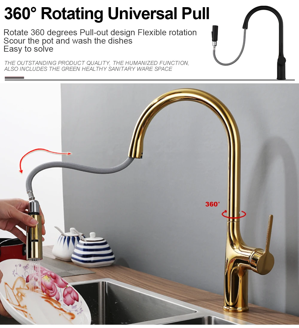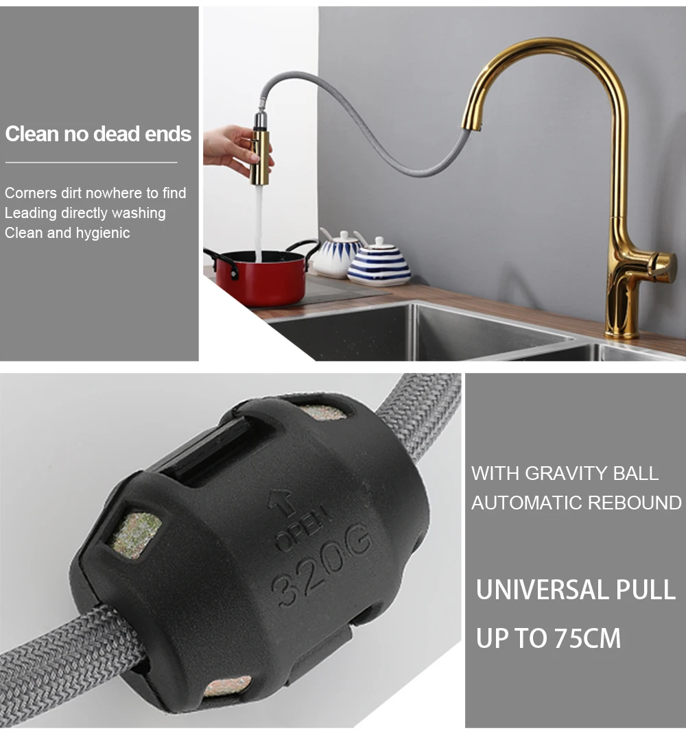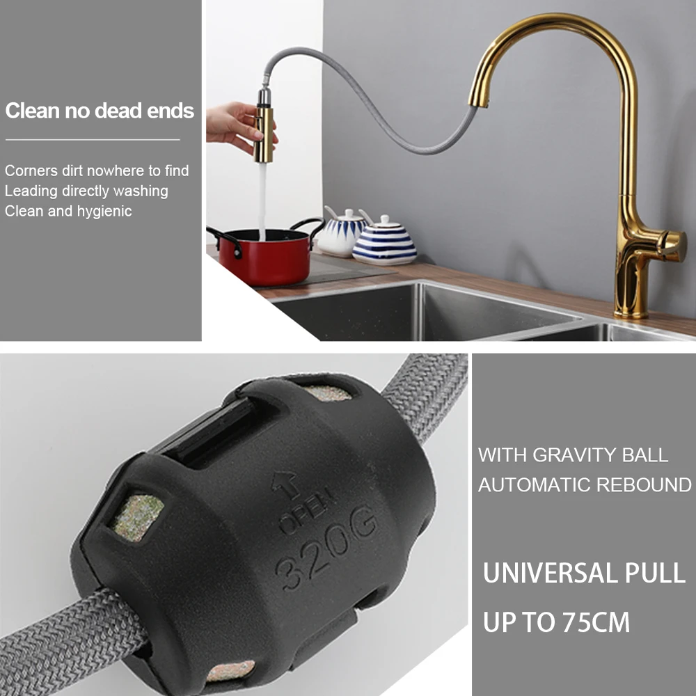 Bagnolux ไทเทเนียมสีดำแปรงดาดฟ้าติดตั้งก๊อกน้ำห้องครัว2ฟังก์ชั่นดึงดึง Out Mixer ก๊อกน้ำร้อนและเย็น