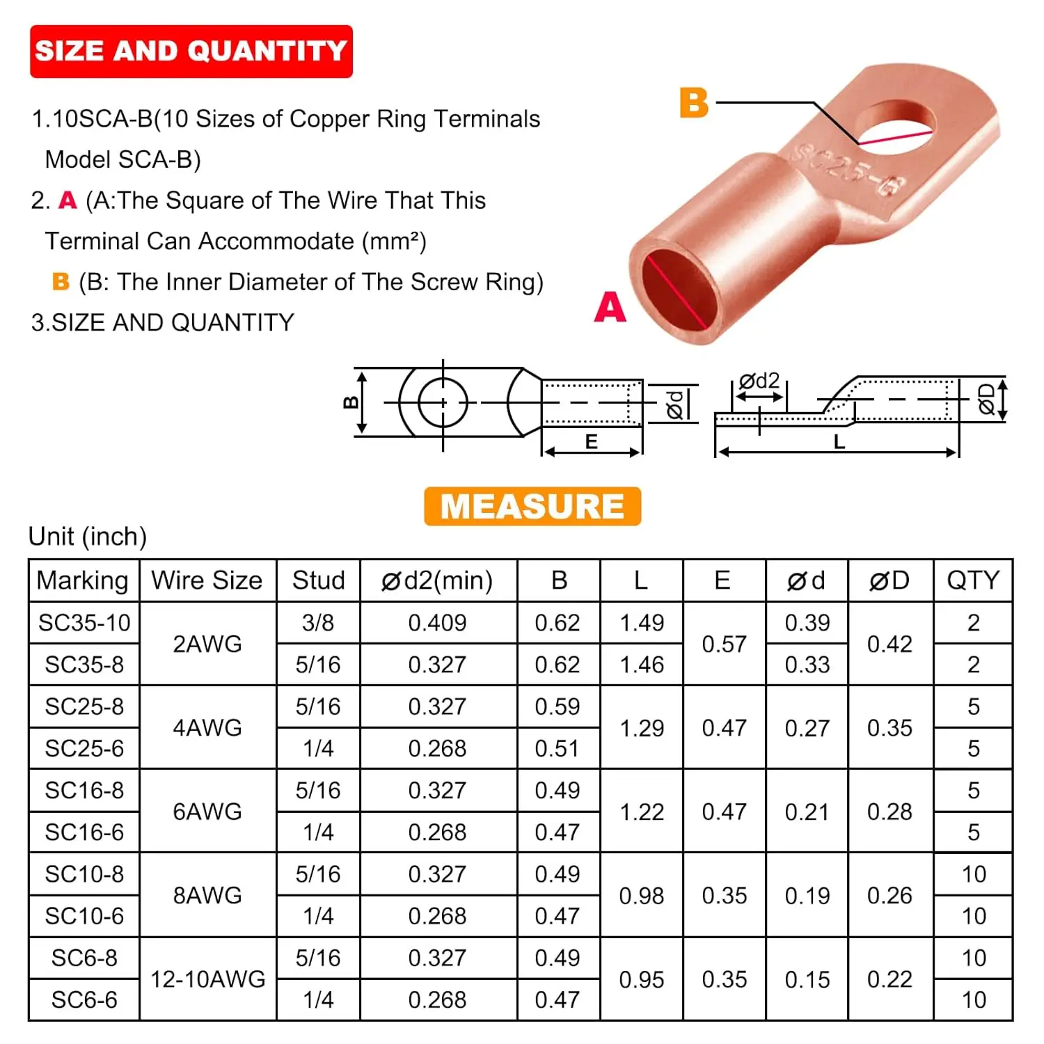 ✔️ตัวเชื่อมทองแดงที่มีเอกลักษณ์และมีคุณภาพ: ขั้วต่อวงแหวน SC ทั้งหมดของเราทําจากทองแดงบริสุทธิ์ 100% เพื่อการนําไฟฟ้าสูงสุด พร้อมพื้นผิวกระป๋องเพื่อป้องกันการกัดกร่อนการออกแบบหน้าต่างการตรวจสอบช่วยให้สามารถตรวจสอบการใส่สายไฟได้อย่างเหมาะสม