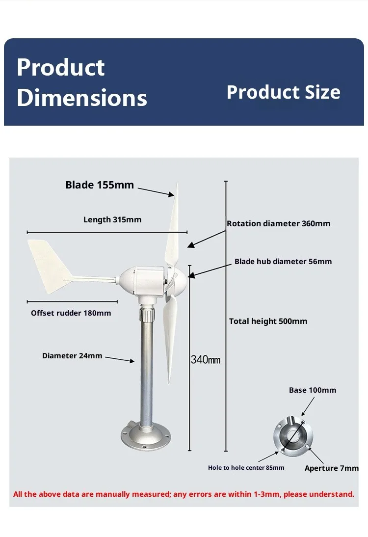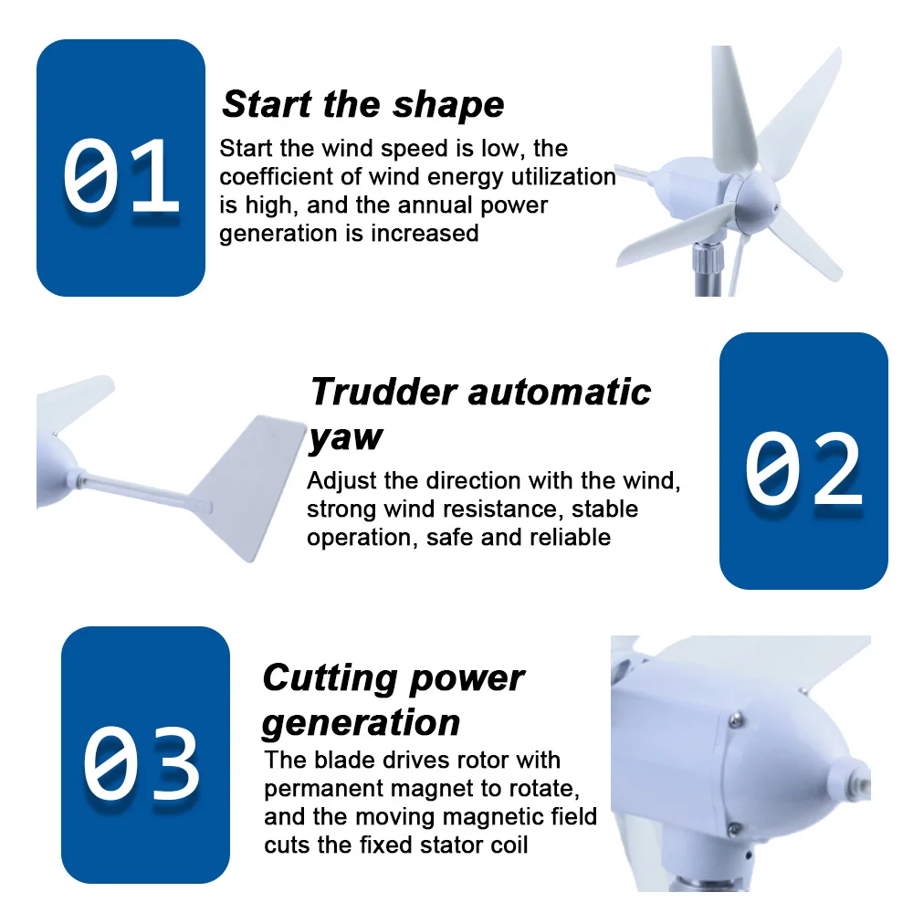 กังหันลมขนาดเล็ก 50 วัตต์ 5 ใบพัด เครื่องกำเนิดไฟฟ้ากระแสสลับ 3 เฟส มอเตอร์แม่เหล็กถาวร สำหรับการศึกษาวิทยาศาสตร์ DIY และการชาร์จพลังงานกลางแจ้ง