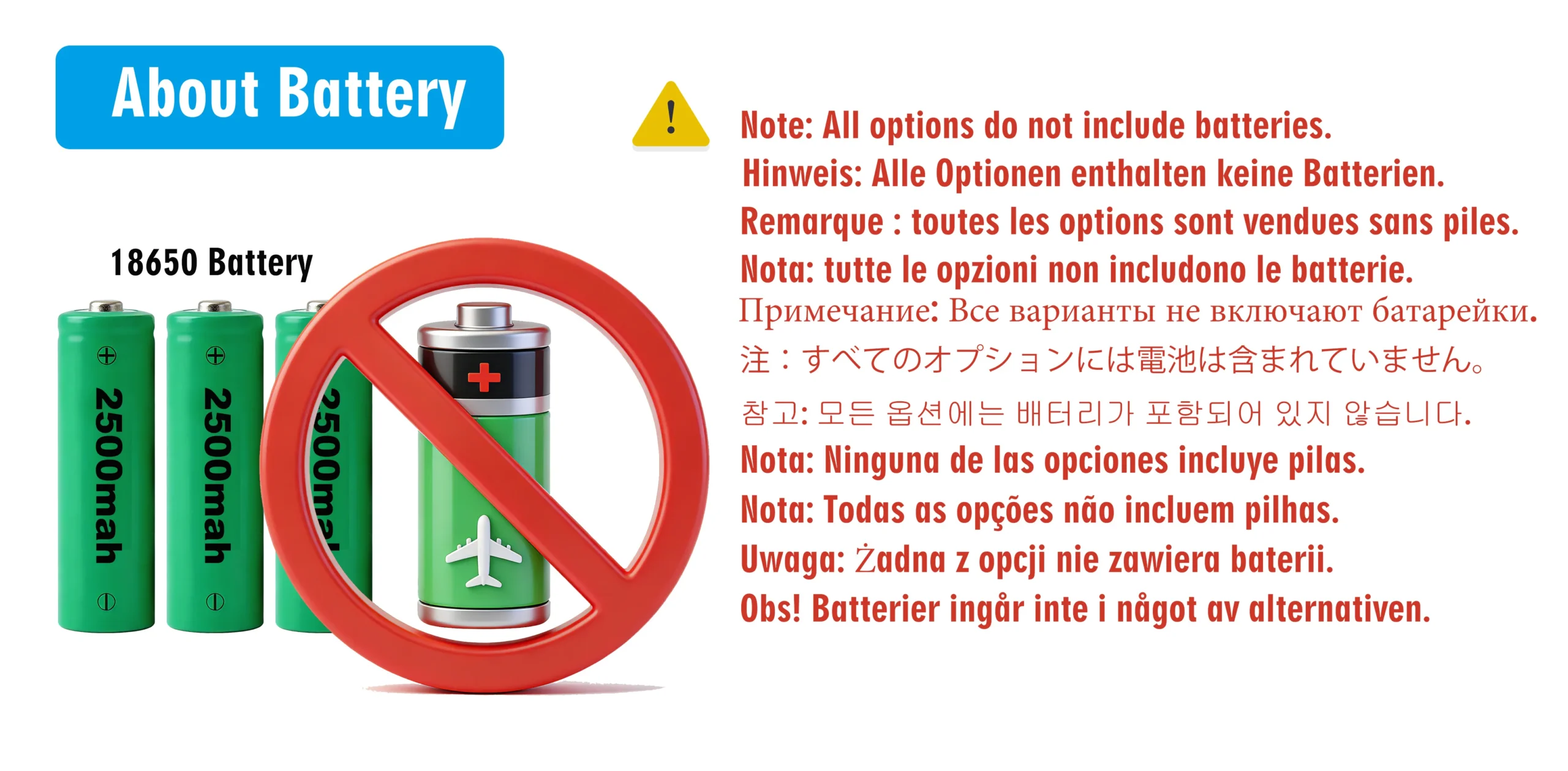 ไม่รวมแบตเตอรี่!!!หากคุณไม่สามารถซื้อแบตเตอรี่ 18650 ได้ อย่าซื้อผลิตภัณฑ์นี้!อย่าซื้อมัน!!!