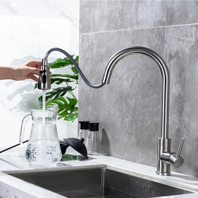 ☛ หัวฉีดแบบดึงออก: หัวฉีดและหัวพ่นหมุนได้ 360 องศา, หัวพ่นแบบโค้งสูงหมุนได้ 360 องศา สามารถให้การล้างอ่างล้างจานได้รอบด้าน, ก๊อกน้ำแบบมือจับเดี่ยวสามารถควบคุมอุณหภูมิและปริมาณน้ำได้สะดวกยิ่งขึ้นก๊อกน้ำอเนกประสงค์สำหรับอ่างล้างจานช่วยอำนวยความสะดวกในงานต่างๆ ภายในพื้นที่ครัว