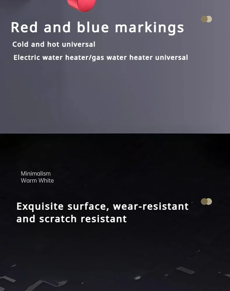 ฟังก์ชัน: ช่องทางน้ำเข้าแบบไหลสูง/ป้องกันการระเบิดและทนทาน/สัญลักษณ์สีแดงและสีน้ำเงิน/รองรับน้ำร้อนและน้ำเย็นแบบสากล