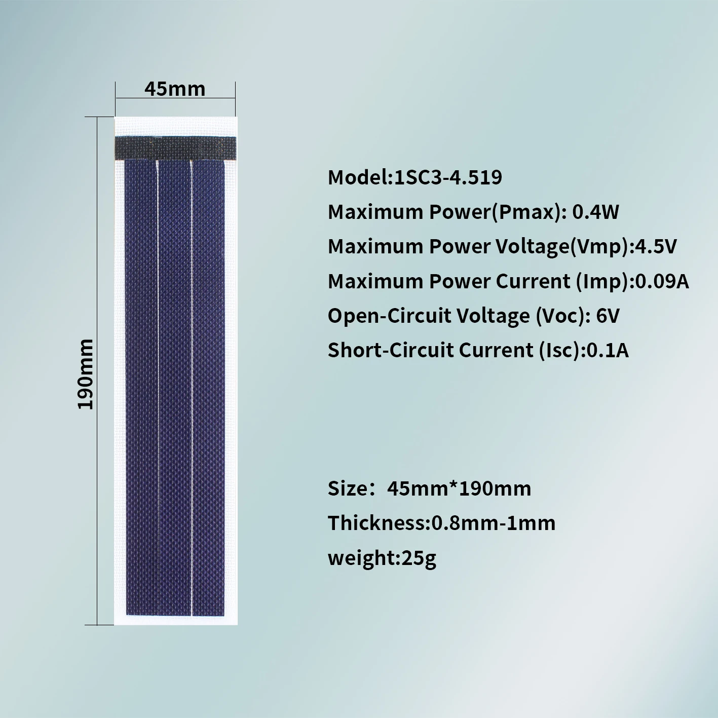 แผงเซลล์แสงอาทิตย์ที่มีความยืดหยุ่น 0.4W ชาร์จกลางแจ้งเซลล์แสงอาทิตย์ ซิลิกอนอุ่น แผงยืดหยุ่นที่มีความยืดหยุ่น โมดูลพลังงานแสงอาทิตย์น้ําหนักเบา