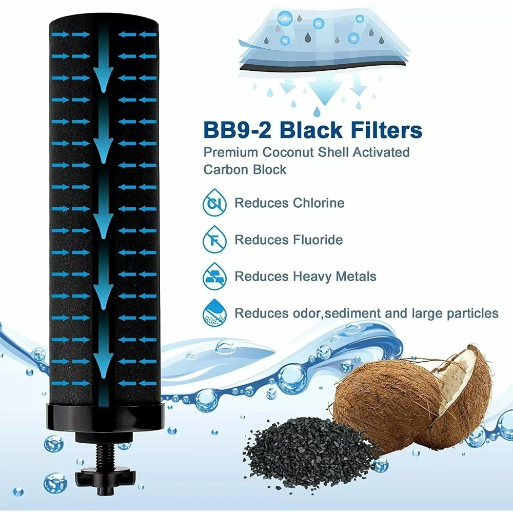 ไส้กรองน้ำสำหรับ BB9-2 ไส้กรองคาร์บอนกัมมันต์สีดำ ใช้ได้กับระบบกรองน้ำแบบใช้แรงโน้มถ่วง Berkey Gravity Royal Crown
