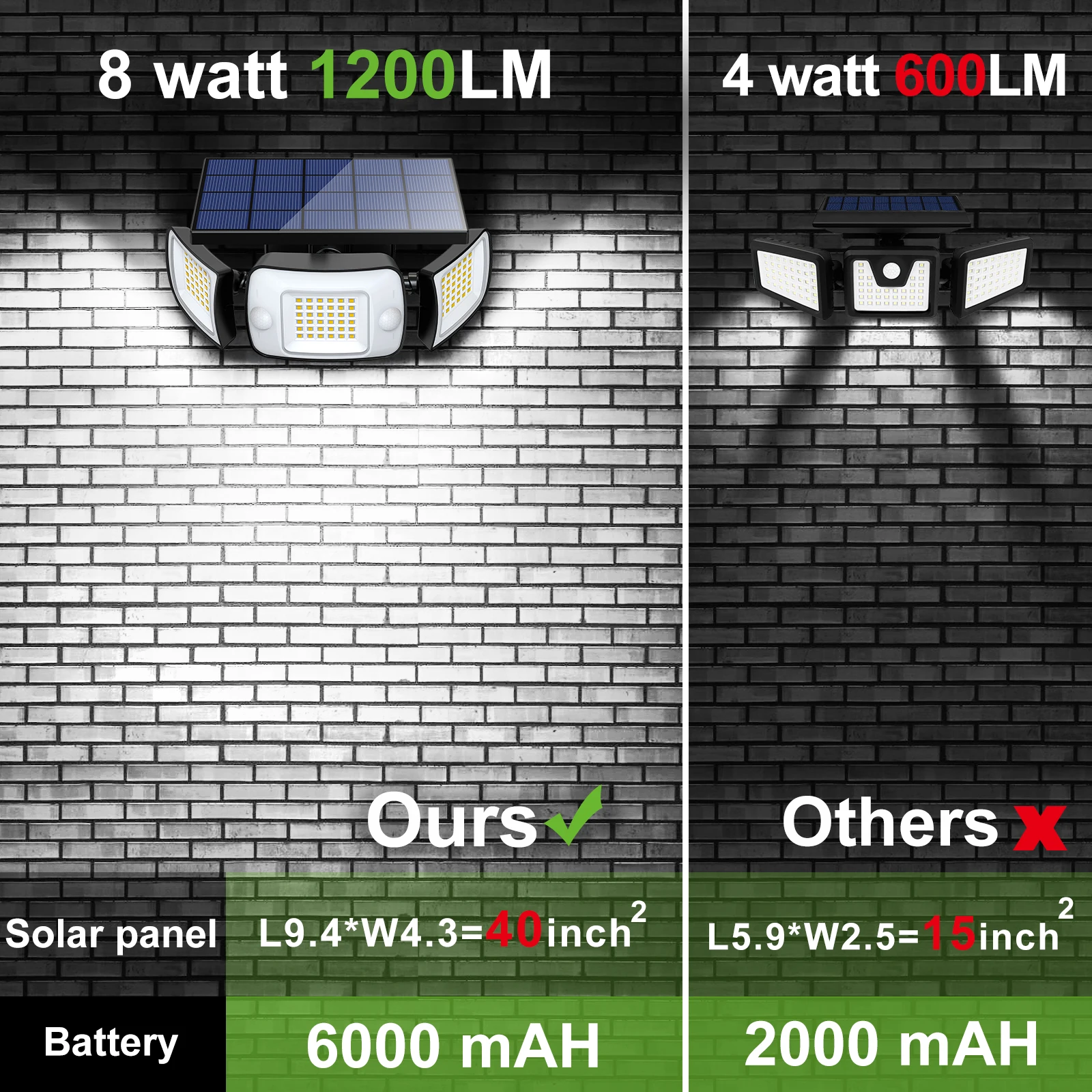 การออกแบบเซ็นเซอร์คู่ที่เป็นนวัตกรรมใหม่ตรวจจับการเคลื่อนไหวผ่านช่วงที่กว้างกว่าเซ็นเซอร์เดี่ยวรุ่นมาก และให้ความคุ้มครองความปลอดภัยแบบ 180 องศาเต็มรูปแบบคุณลักษณะการรักษาความปลอดภัยที่เพิ่มขึ้นของไฟรักษาความปลอดภัยพลังงานแสงอาทิตย์นี้ช่วยลดจุดบอดและให้การปกป้องแสงมากขึ้นตลอดทั้งคืน