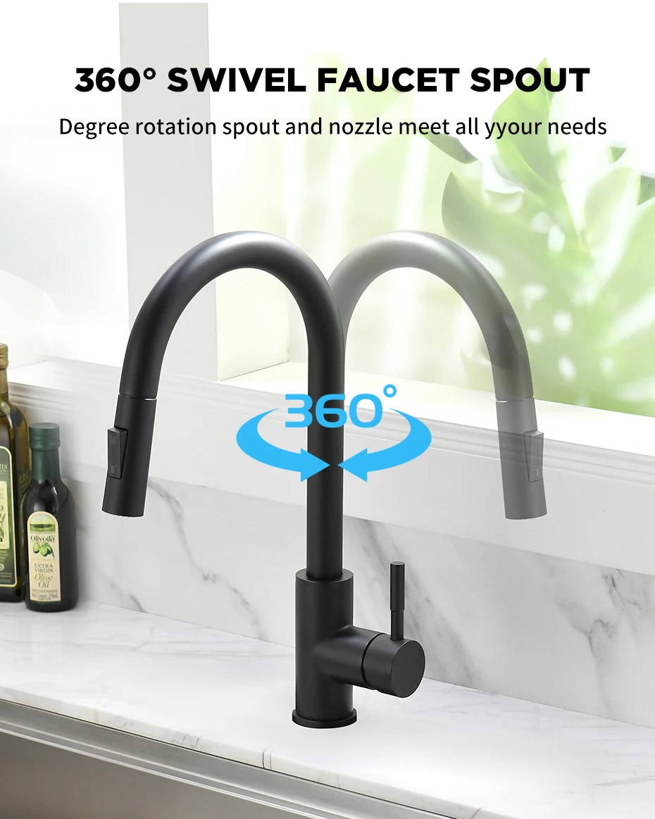 G1/2 ก๊อกน้ําห้องครัวสีดําพื้นผิวน้ําก๊อกน้ําอ่างล้างจานก๊อกน้ําดึงออกก๊อกน้ําห้องครัวเดี่ยว TAP