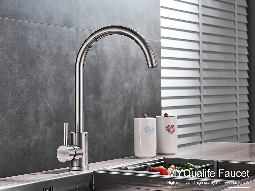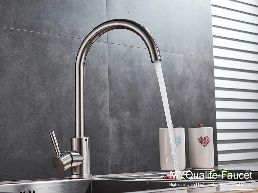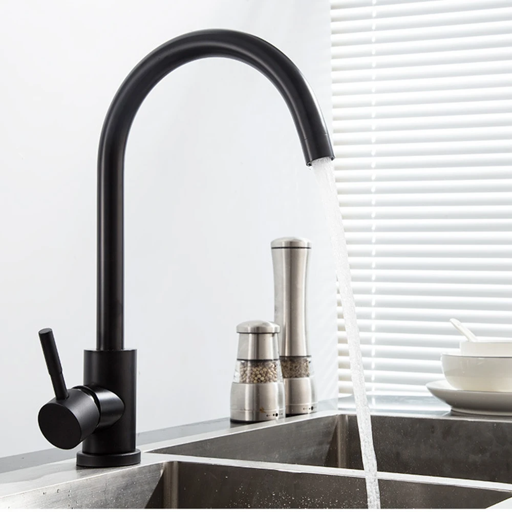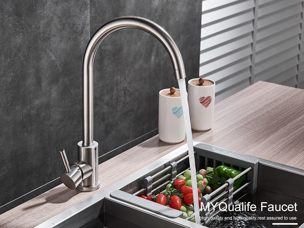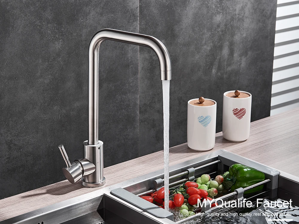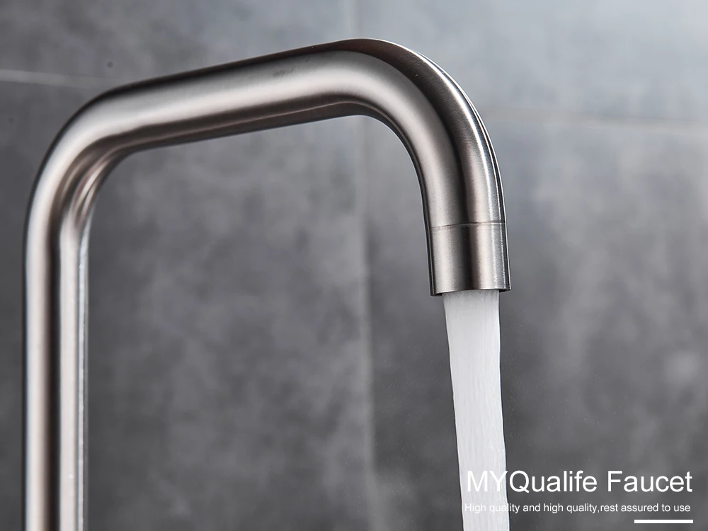 สแตนเลสสตีลก๊อกน้ําห้องครัวดาดฟ้าอ่างล้างจานก๊อกน้ําสูง 360 องศาหมุนร้อนเย็น Mixer Water TAP