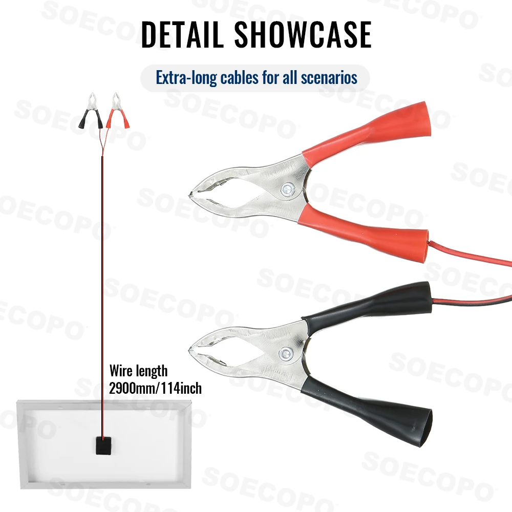 ✅ ปลอดภัยและทนทาน: สายเคเบิลยาว 2.9 ม. (114 นิ้ว) สำหรับการเชื่อมต่อระยะไกล คลิปแบตเตอรี่ยางหุ้มฉนวนป้องกันไฟฟ้าช็อต โครงสร้างที่ปิดสนิทเพื่อกันน้ำ (ทนต่อฝน/น้ำกระเซ็นตื้น)