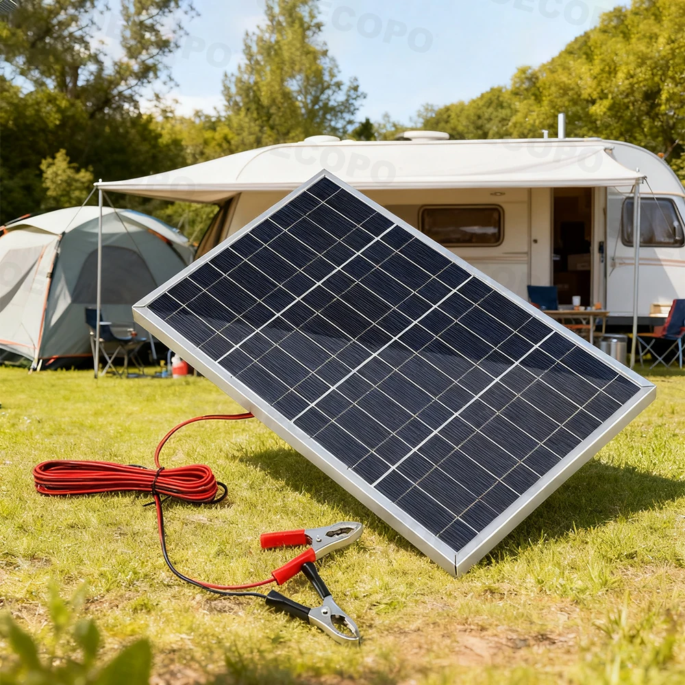 แผงโซลาร์เซลล์ 100 วัตต์ พร้อมคลิปหนีบแบตเตอรี่ 18 โวลต์ แบบพกพา ชาร์จแบตเตอรี่รถยนต์/รถบ้าน/เรือ/สถานีไฟฟ้า 12 โวลต์ ได้โดยตรง