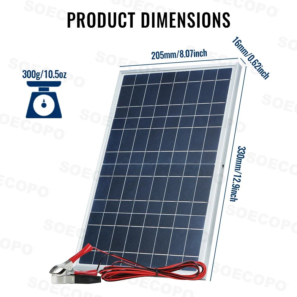 ชุดแผงโซลาร์เซลล์ 12V กันน้ำระดับ IP65 ประสิทธิภาพสูง สำหรับชาร์จแบตเตอรี่รถยนต์ ชาร์จไฟแบบ Trickle ด้วยพลังงานแสงอาทิตย์ สำหรับรถบ้านและรถแทรกเตอร์