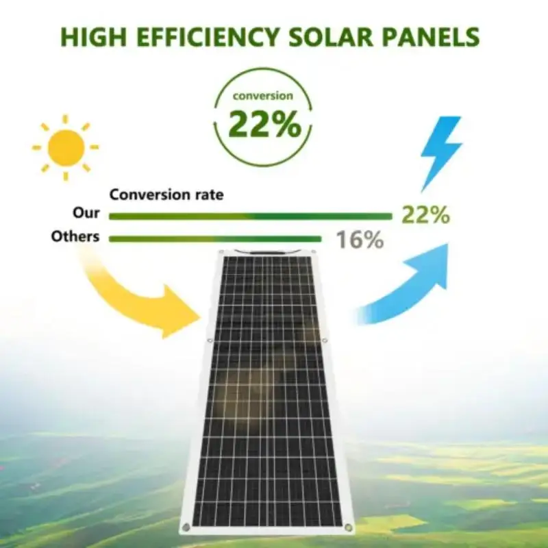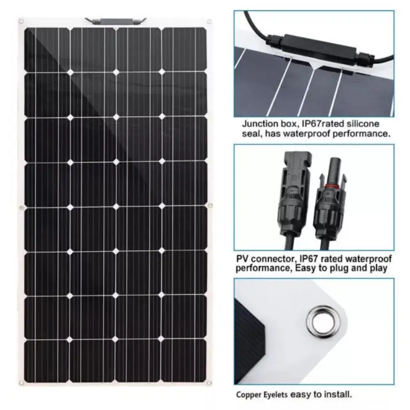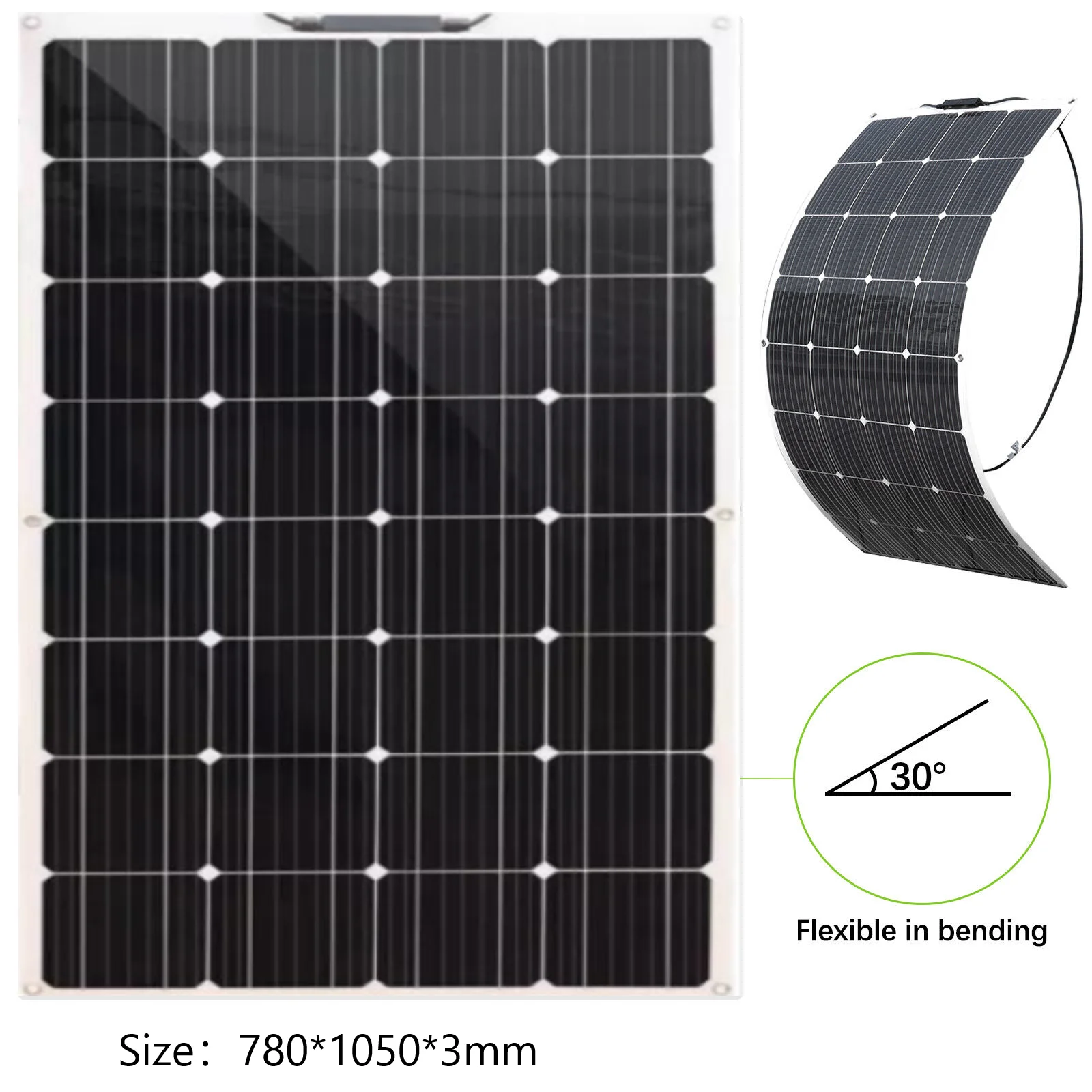 Easy to use: This product is a flexible solar panel that can be bent up to 30 degrees. Suitable for installation on irregular smooth surfaces.