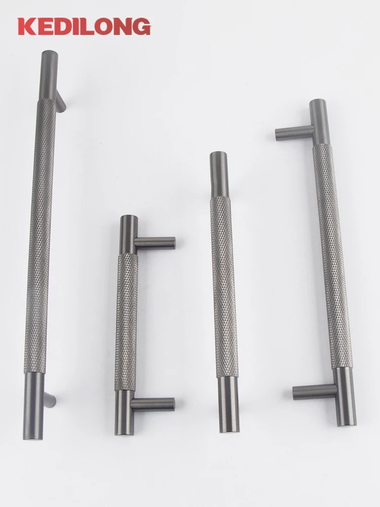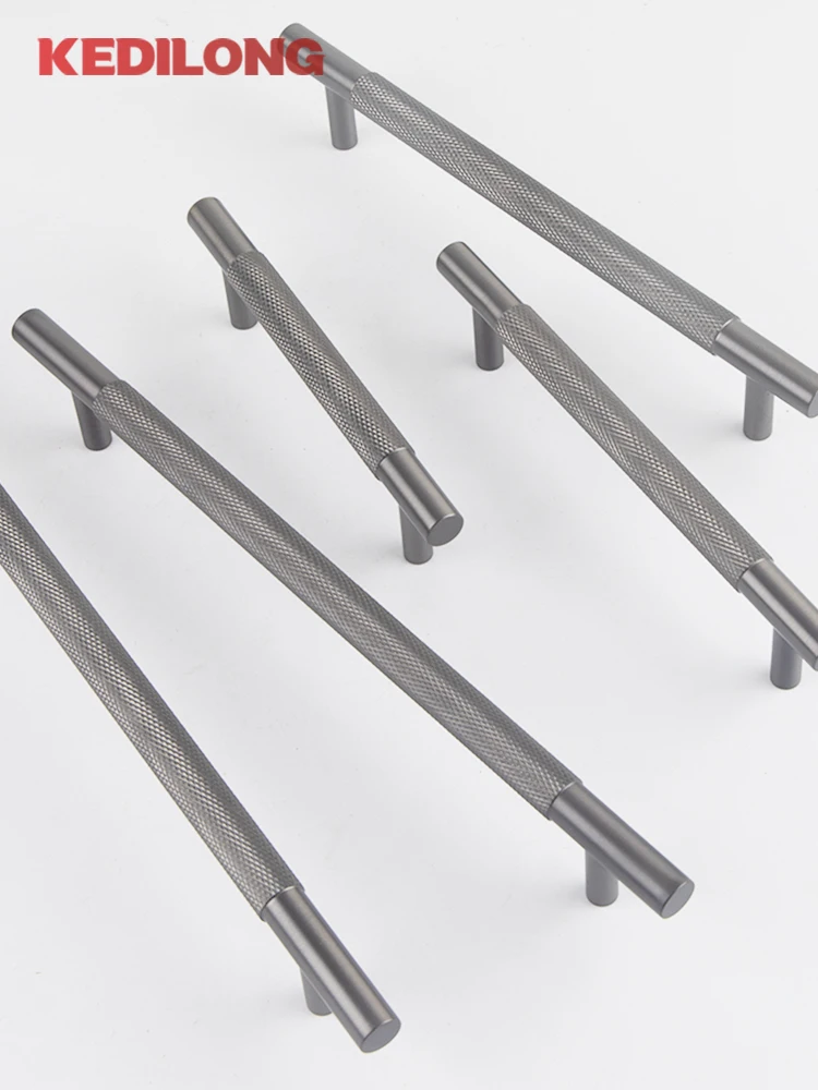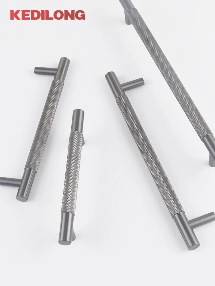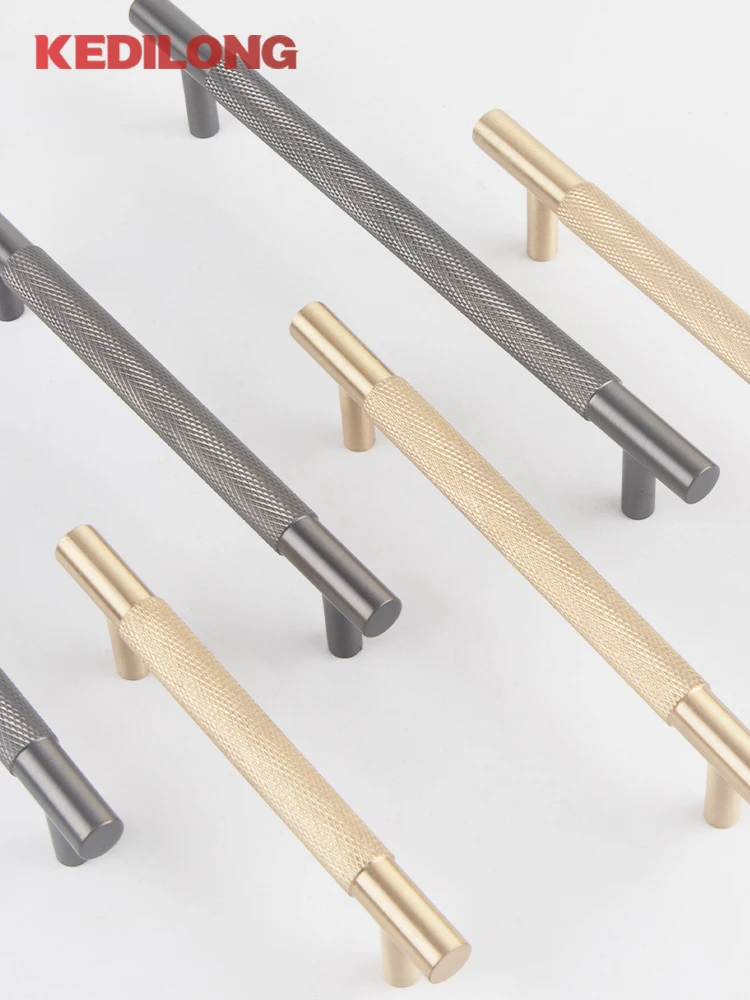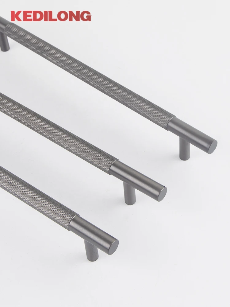 มือจับตู้ KEDLO ทำจากทองเหลืองแท้ ดีไซน์หรูหรา ลายขัดเงา สำหรับตู้เสื้อผ้า ตู้ครัว ลิ้นชัก สี Gunmetal