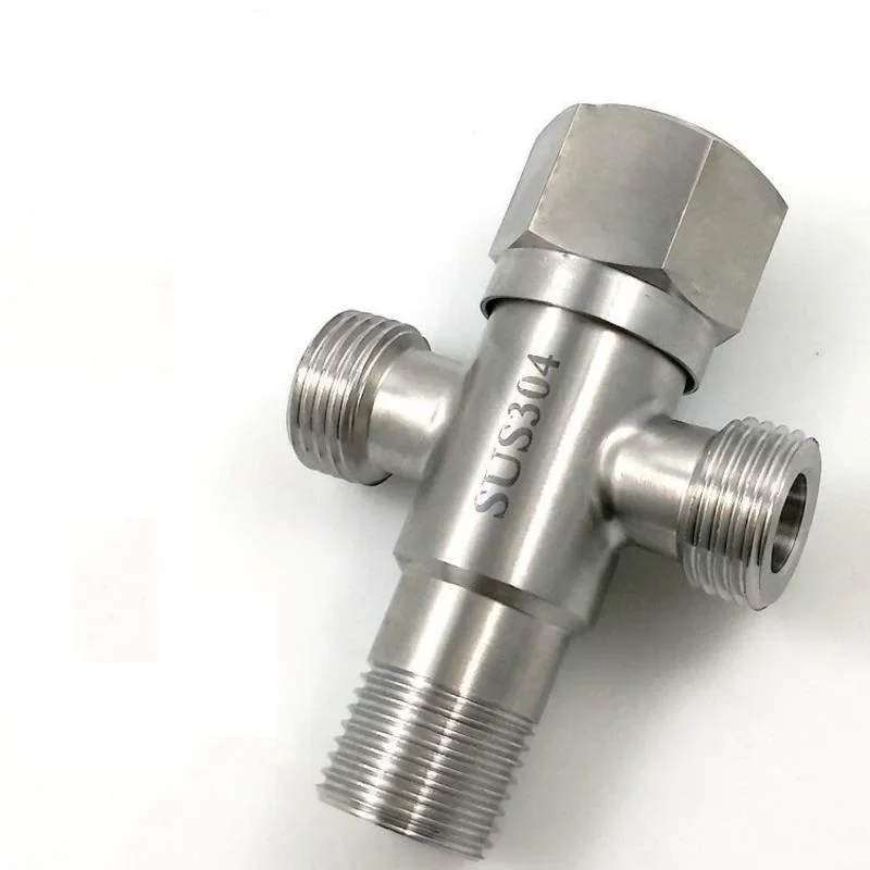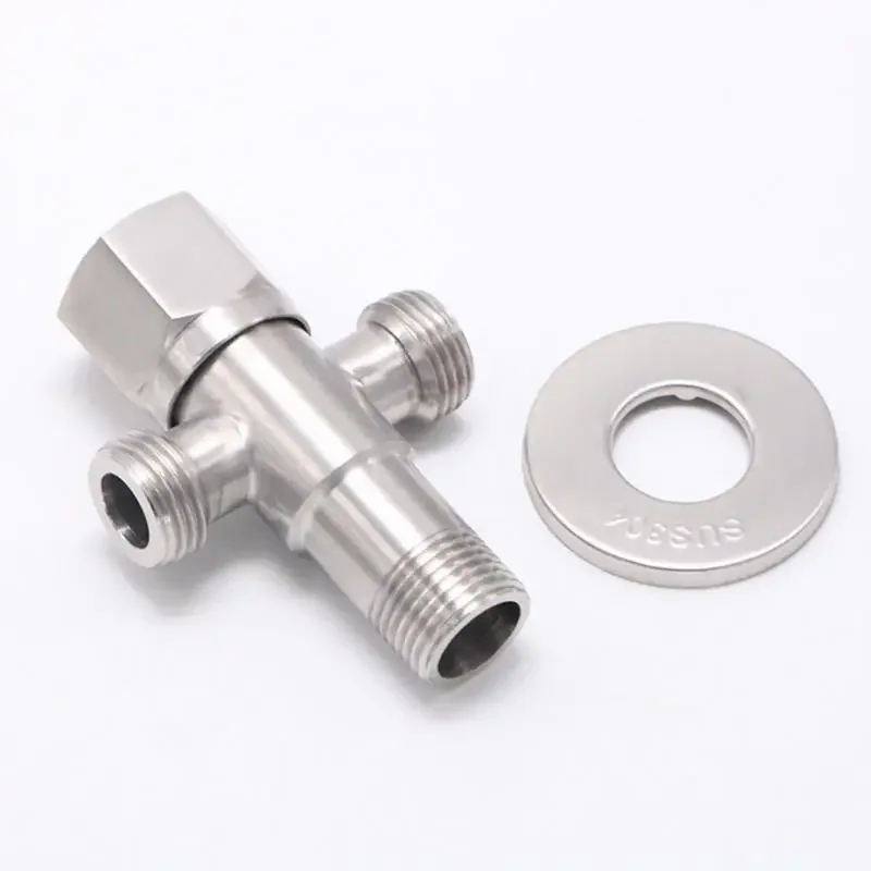 SUS304 วาล์วมุมทางออกคู่สําหรับห้องครัวห้องน้ํามุมวาล์วจ่ายน้ําทนต่อการกัดกร่อนอุปกรณ์ประปา