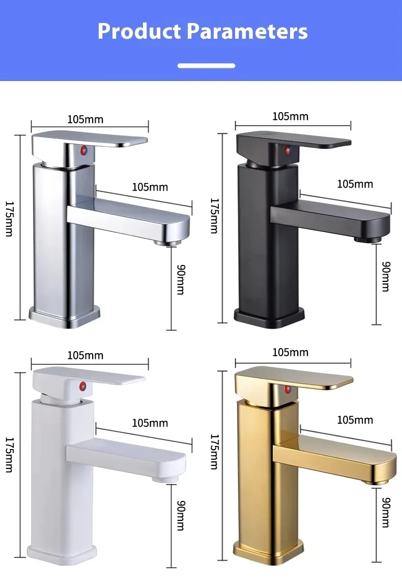 ก๊อกน้ำอ่างล้างหน้าสแตนเลสแบบติดตั้งบนเคาน์เตอร์ ก๊อกน้ำร้อนน้ำเย็นแบบใช้ได้สองทาง สำหรับห้องน้ำในบ้านและห้องครัว