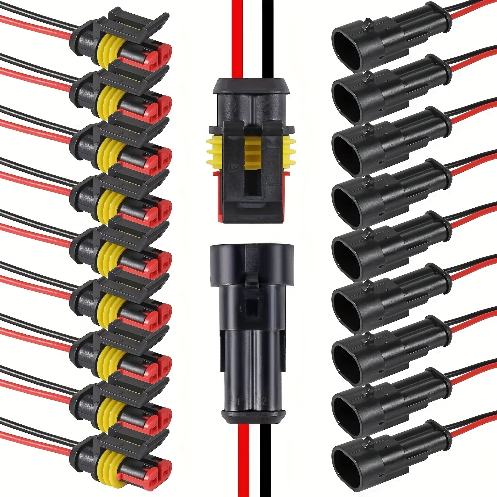ขั้วต่อสายไฟแบบกันน้ำ 2 ขา – ชุดขั้วต่อสายไฟรถยนต์ขนาด 20 AWG สำหรับรถยนต์ รถบรรทุก รถจักรยานยนต์ และเรือเดินทะเล