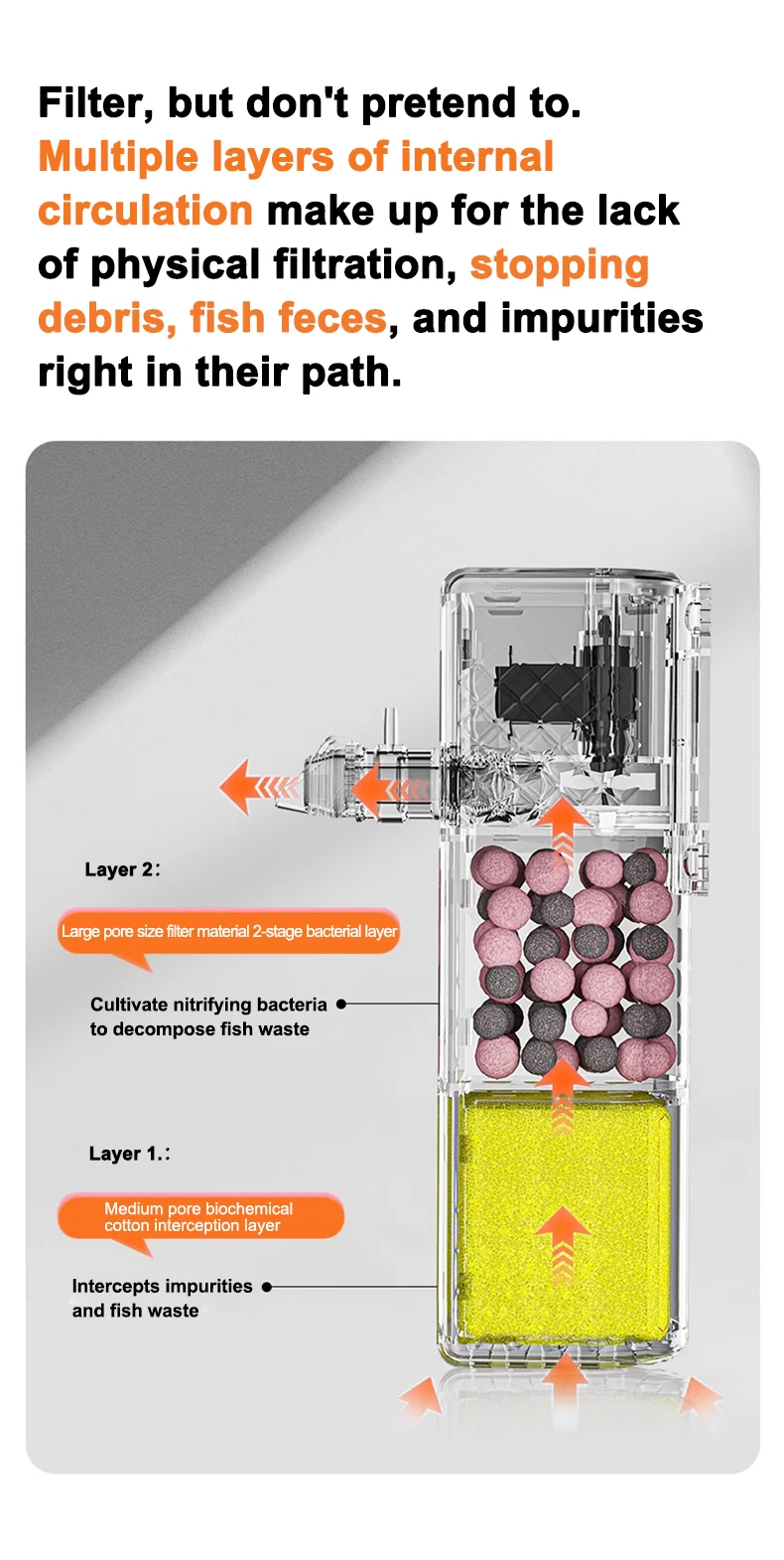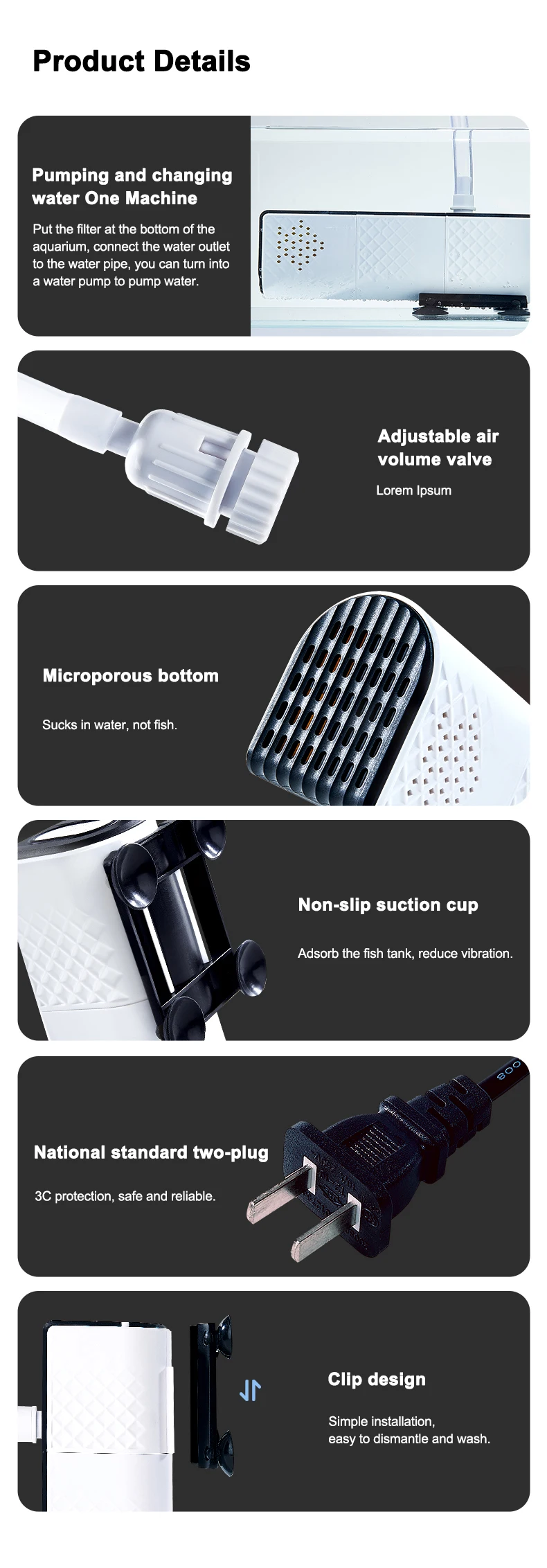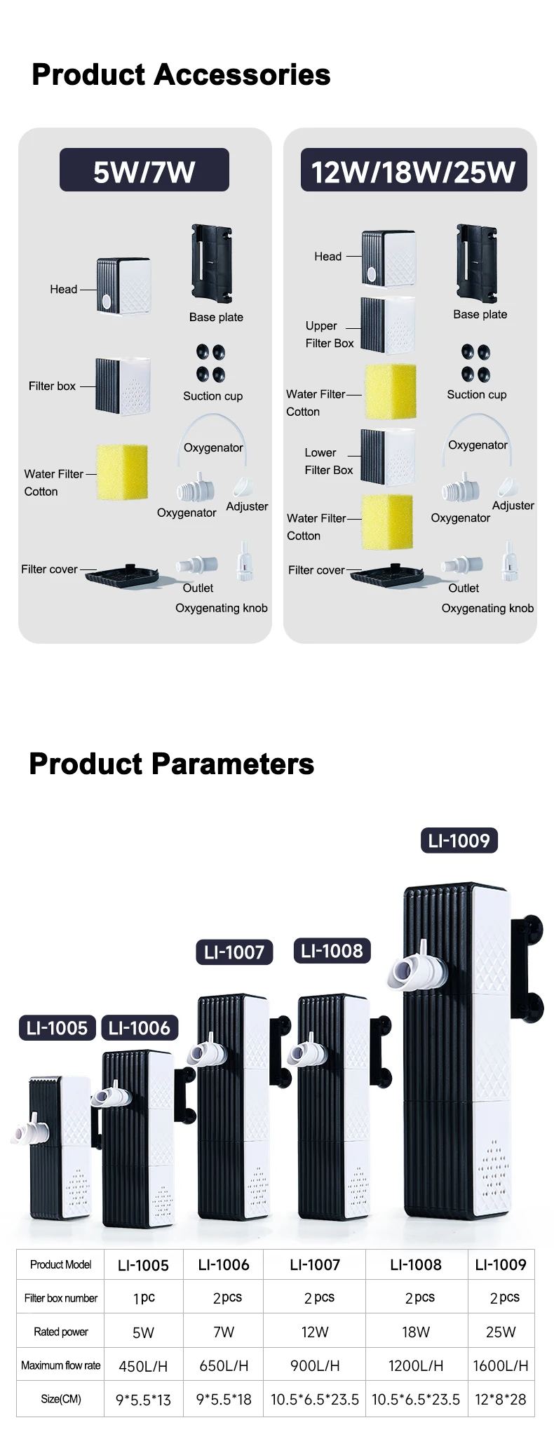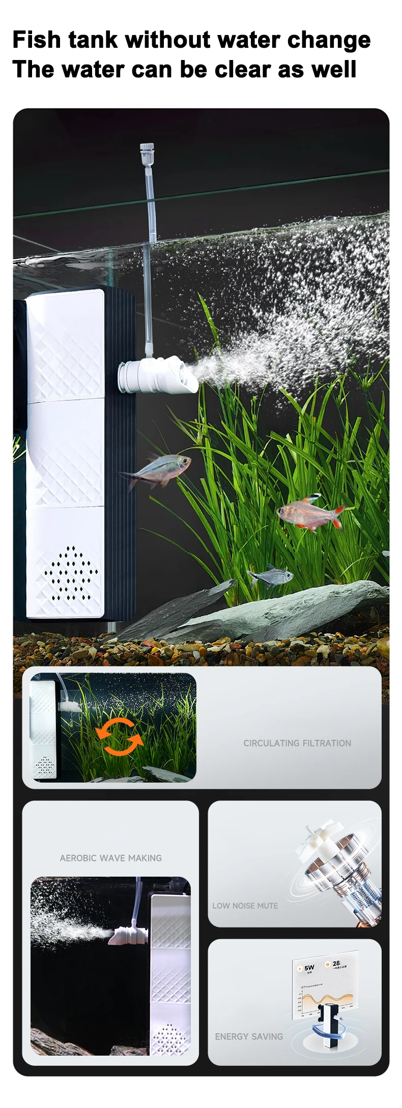 ตัวกรองตู้ปลาเงียบ ระบบกรองน้ำ 3 in 1 ในตัว ระบบกรองตู้ปลาขนาดเล็ก ปั๊มออกซิเจน 25W