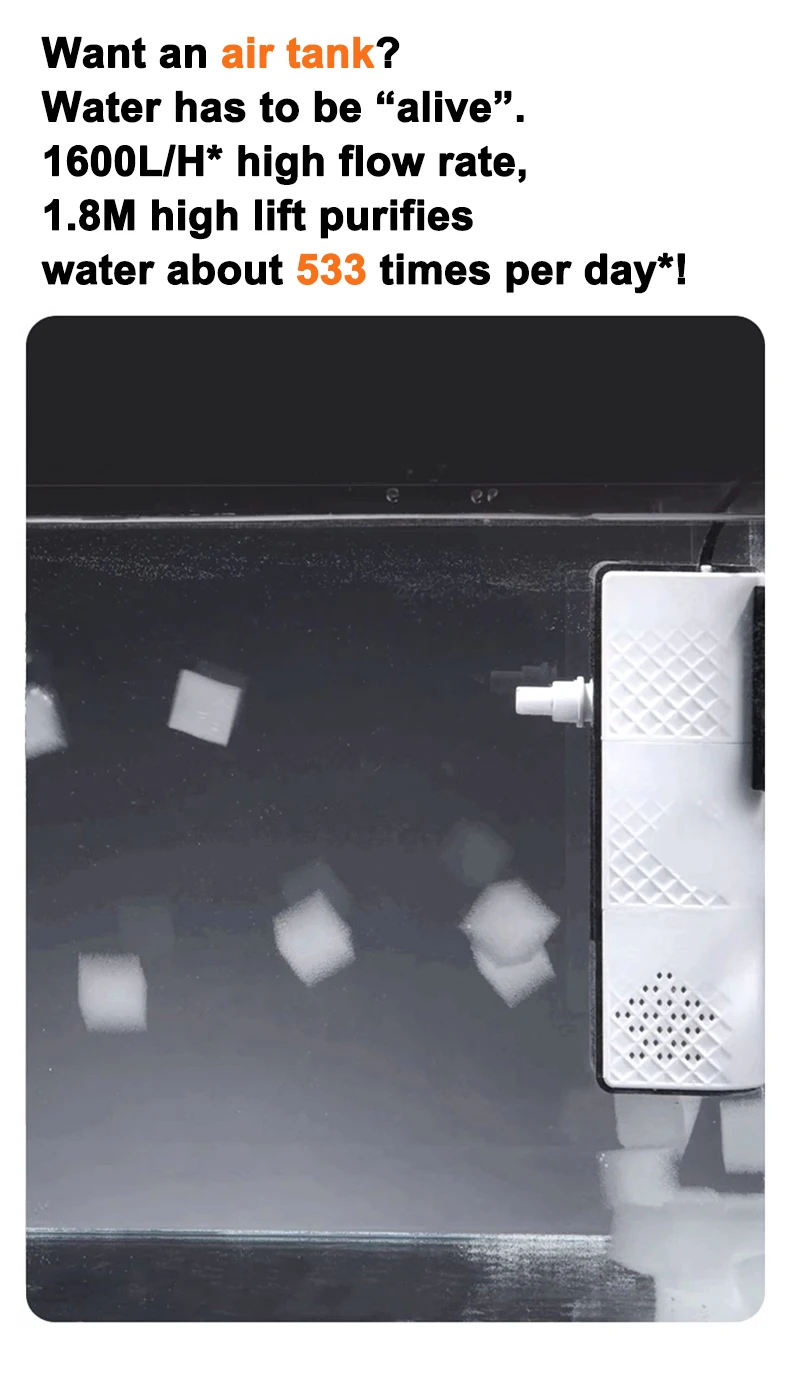 ตัวกรองตู้ปลาเงียบ ระบบกรองน้ำ 3 in 1 ในตัว ระบบกรองตู้ปลาขนาดเล็ก ปั๊มออกซิเจน 25W