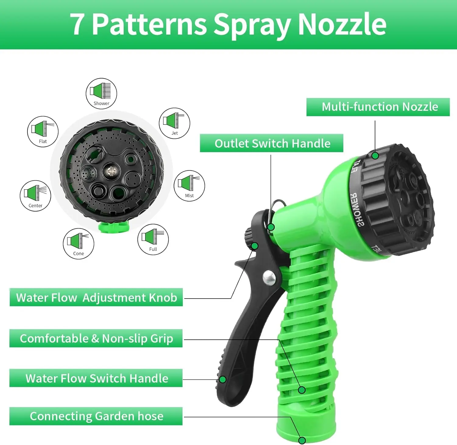สายยางมหัศจรรย์แบบขยายได้, เครื่องล้างรถแรงดันสูง, ฟังก์ชั่นพ่นน้ำ 7 แบบ, ปืนฉีดน้ำ, สายยางรดน้ำสวนในบ้าน