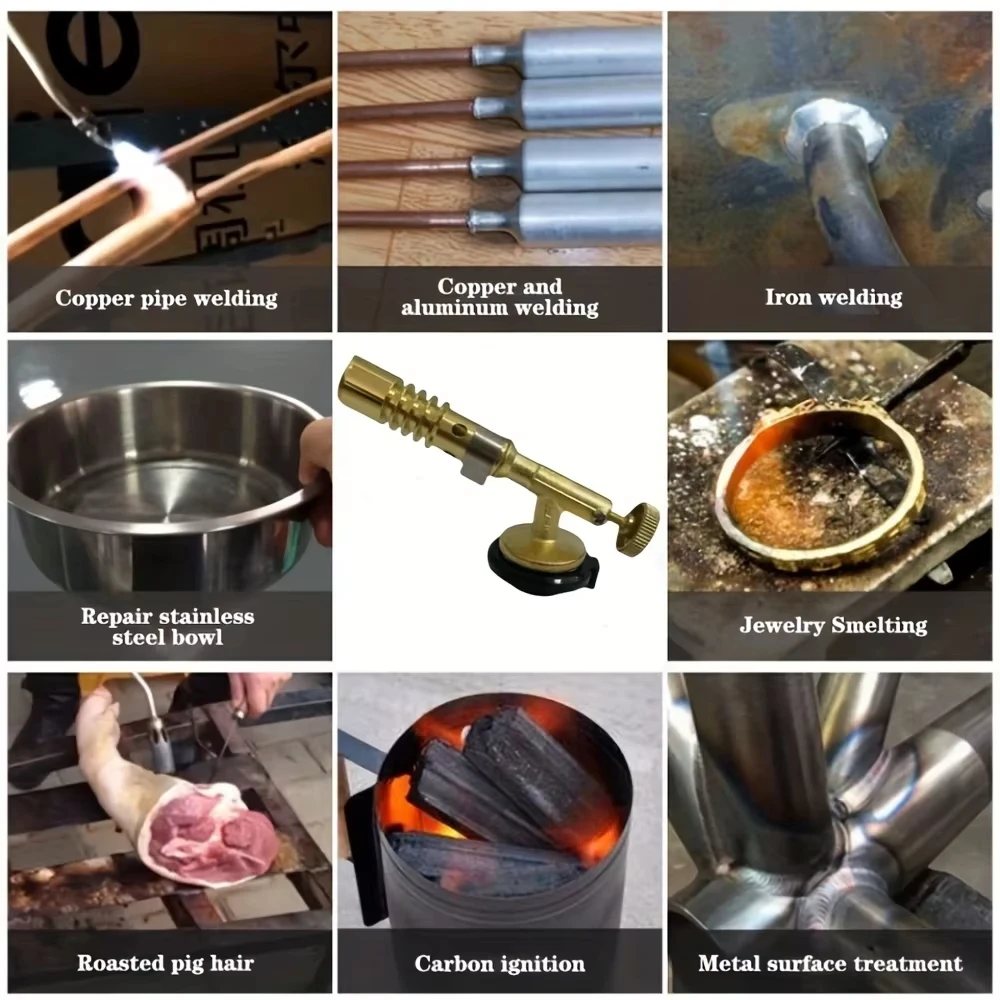 หัวพ่นไฟแก๊สแบบพกพาทนทานอุณหภูมิสูงทองเหลืองทองแดงเหมาะสำหรับบัดกรีท่อประปาซ่อมแซมโลหะงานช่างทำความร้อนและใช้งานได้ทั้งในบ้านหรือแบบมืออาชีพ