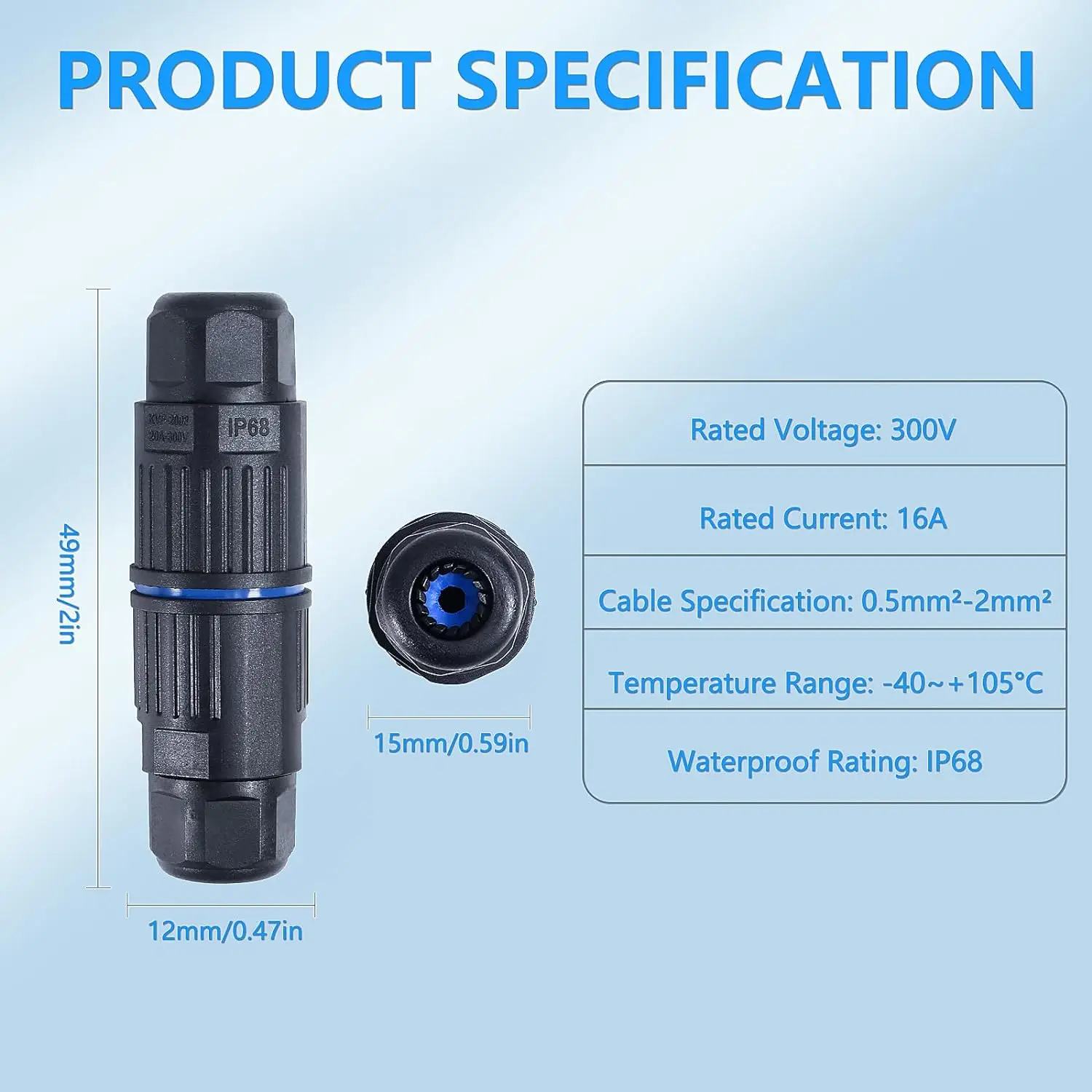 10Pcs IP68 2Pin Waterproof Straight Connector |
