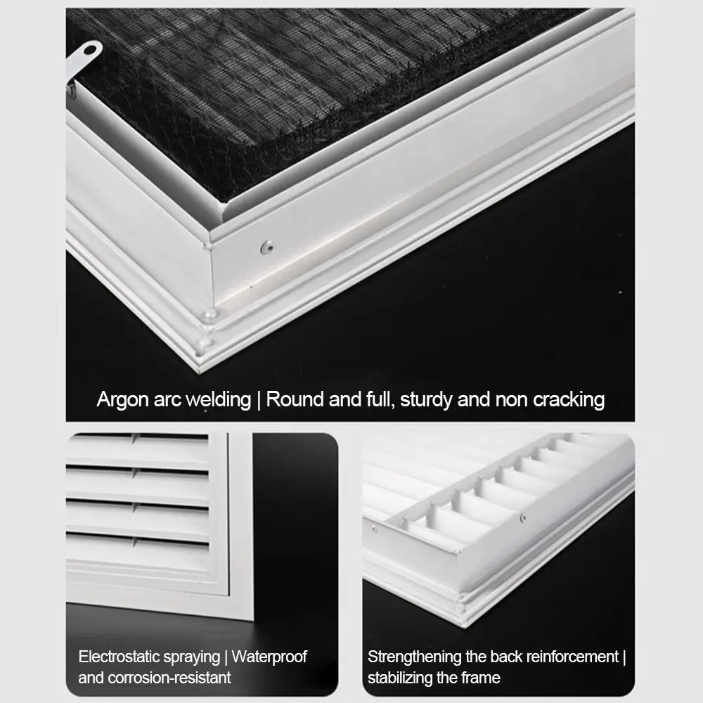 ตะแกรงระบายอากาศอะลูมิเนียมอัลลอยด์แบบใหม่ รูปทรงสี่เหลี่ยม พร้อมตะแกรงตาข่ายสำหรับระบายอากาศกลับ สีขาว สำหรับผนังภายนอก จาก 1 รีวิว