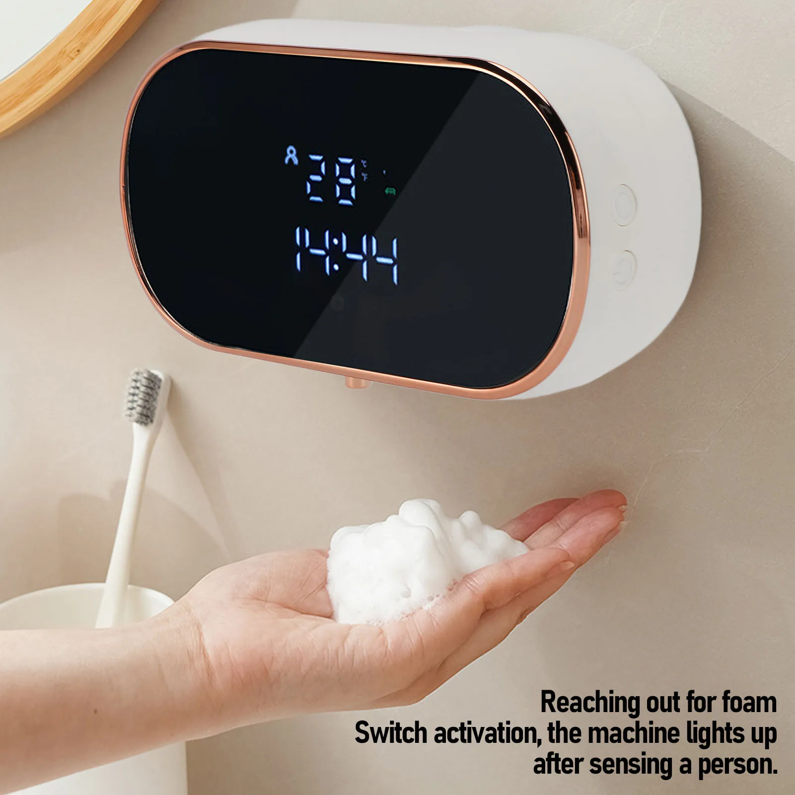 เครื่องจ่ายสบู่อัตโนมัติแบบติดผนัง ความจุขนาดใหญ่ เครื่องจ่ายสบู่เซ็นเซอร์แบบชาร์จไฟได้แบบไม่ต้องสัมผัสพร้อมหน้าจอ LED, สมาร์ทอิเล