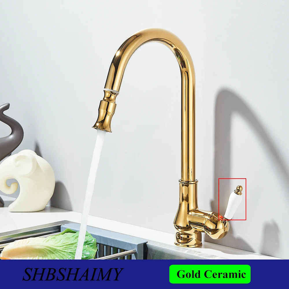SHBSHAIMY ทองเหลืองโบราณก๊อกน้ําห้องครัวดึง 360 หมุน Spout ก๊อกน้ําเดี่ยวหมุนน้ําร้อนน้ําเย็น KITCHEN Mixer TAP
