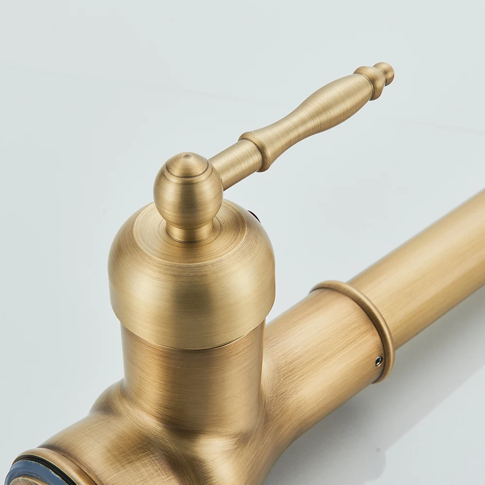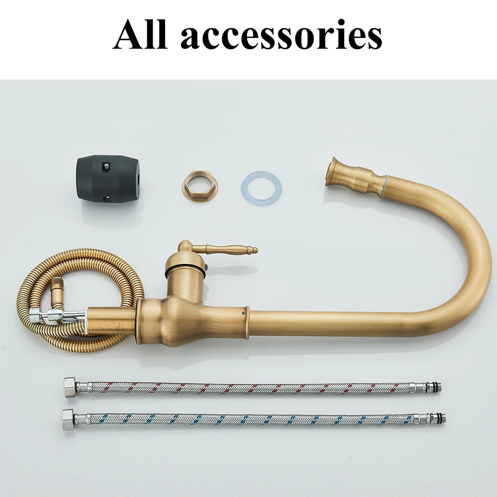 SHBSHAIMY ก๊อกน้ําห้องครัวทองเหลืองโบราณพร้อมพวยหมุน 360 องศาแบบดึงออก, หมุนได้รูเดียว, สําหรับน้ําร้อนและน้ําเย็น, ก๊อกผสมครัว
