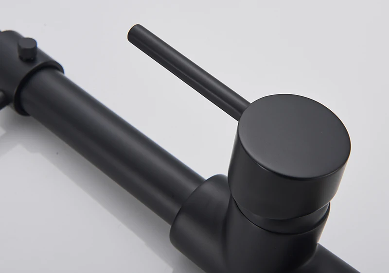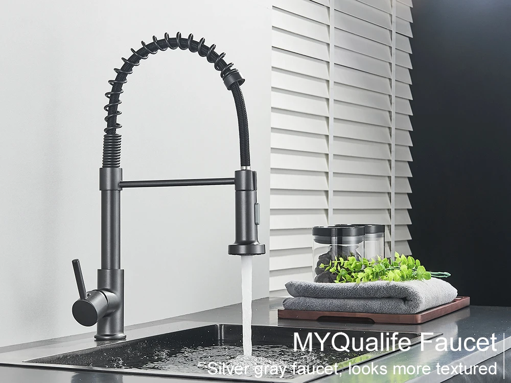 สีเทาเงินก๊อกน้ําอ่างล้างจาน One Handle ฤดูใบไม้ผลิร้อนและเย็น TAP ดาดฟ้าติดตั้งห้องน้ํา Matte Black KITCHEN Crane