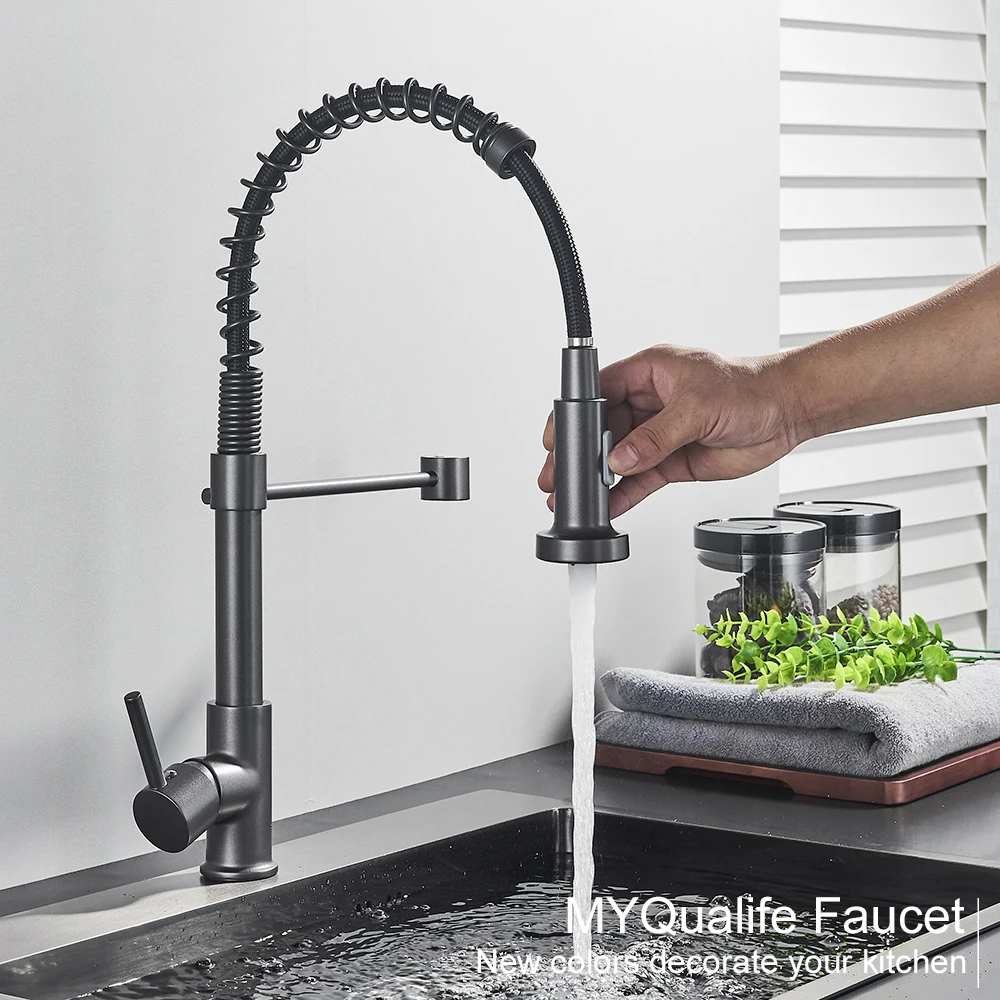 Pull Down Kitchen Sink Faucet One Handle Spring Hot and Cold Water Tap Kitchen Crane