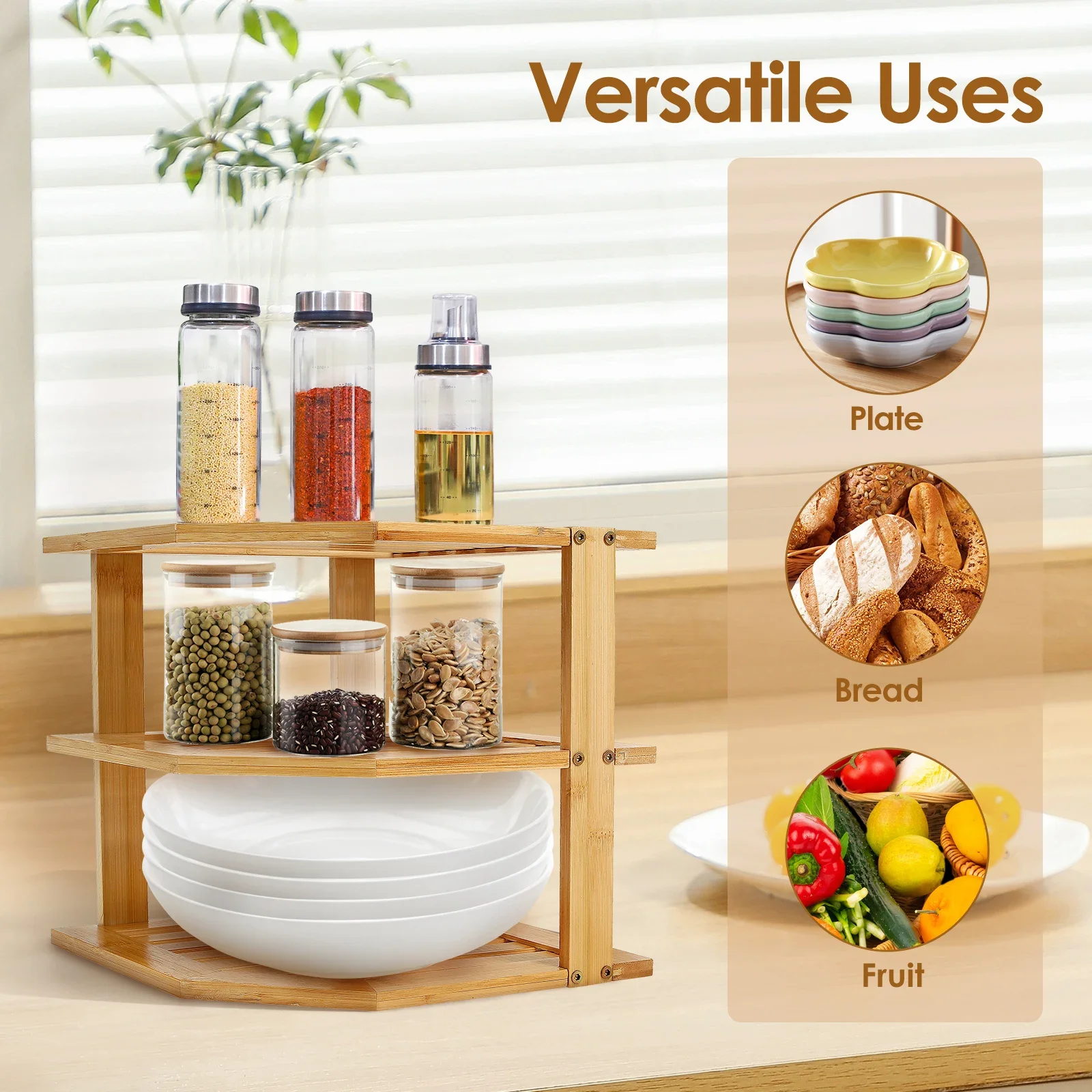 3 ชั้นตู้ชั้นวางของสําหรับห้องครัวทนทานแผ่นไม้ไผ่ชั้นวางมุมชั้นวางจานสําหรับตู้เคาน์เตอร์