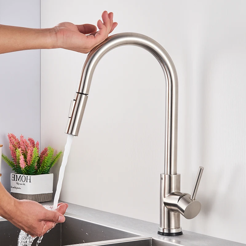 ก๊อกน้ําห้องครัวนิกเกิลขัดเงา Smart Touch Induction Sensitive ก๊อกน้ําก๊อกน้ํา TAP Touch Dual Outlet โหมดน้ํา