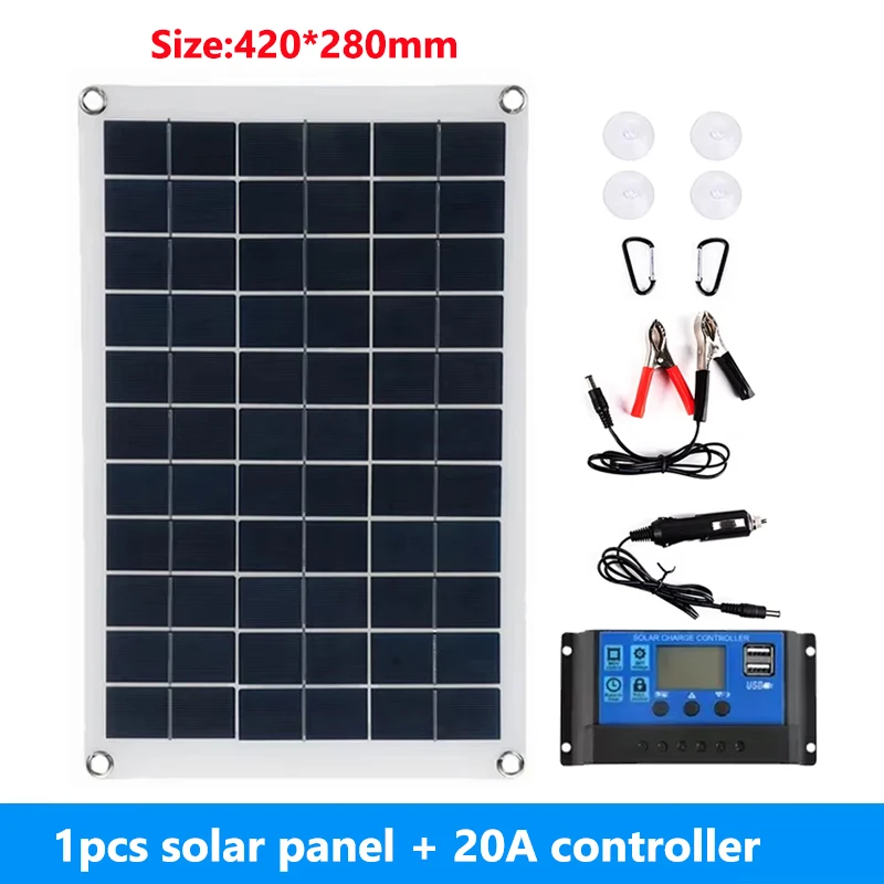 500W100 0W ชุดแผงโซล่า12V ที่ควบคุม100A แผงโซล่าพอร์ต USB ชาร์จแบตเตอรี่พลังงานแสงอาทิตย์แบบพกพาสำหรับการตั้งแคมป์กลางแจ้งมือถือ RV