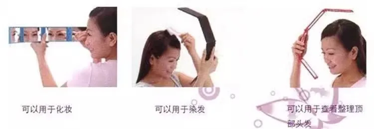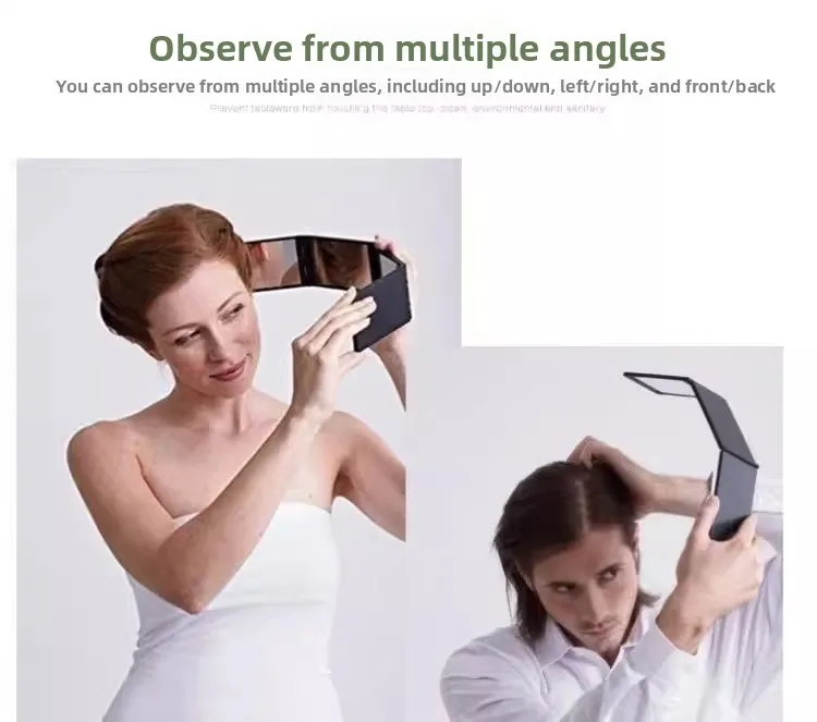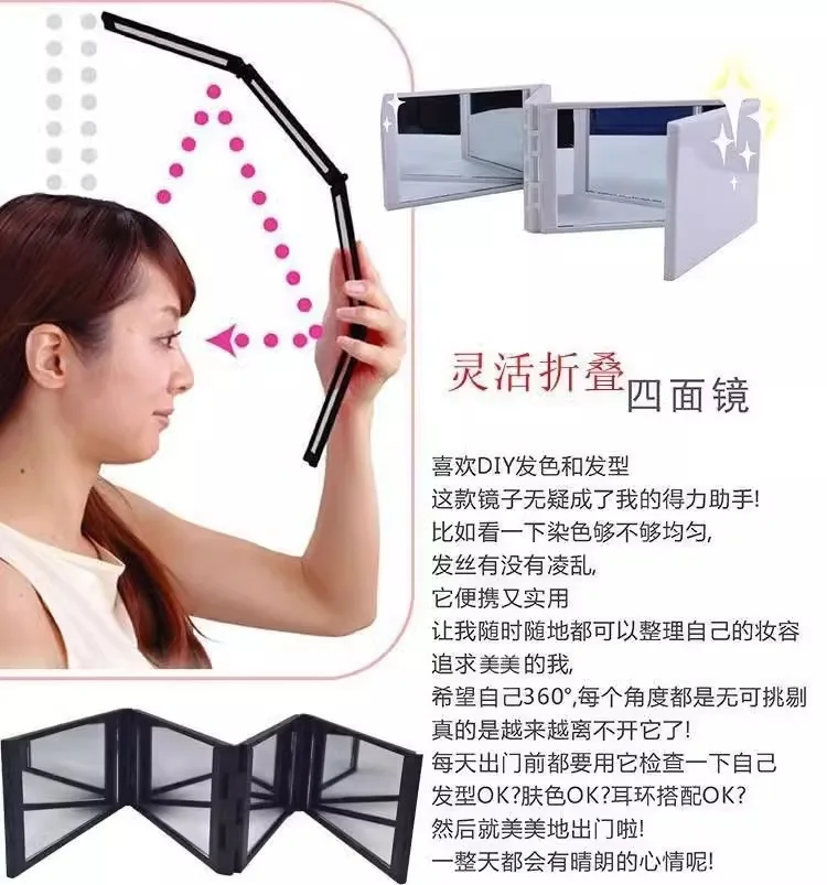 กระจกแต่งหน้าแบบพับได้สี่ทบ มุมมองหลากหลาย สำหรับดูส่วนบนของศีรษะและด้านหลังศีรษะ