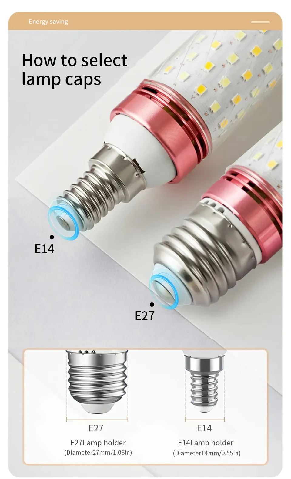 *อุณหภูมิสีต่างๆ: หลอดไฟข้าวโพดบางรุ่นมีฟังก์ชั่นเปลี่ยนสีสามสี เช่น หลอดไฟ LED ข้าวโพดของ Labonta ซึ่งสามารถสลับระหว่างอุณหภูมิสีสามสีได้อย่างง่ายดาย: แสงอุ่นในเวลากลางวันและแสงที่เป็นกลาง