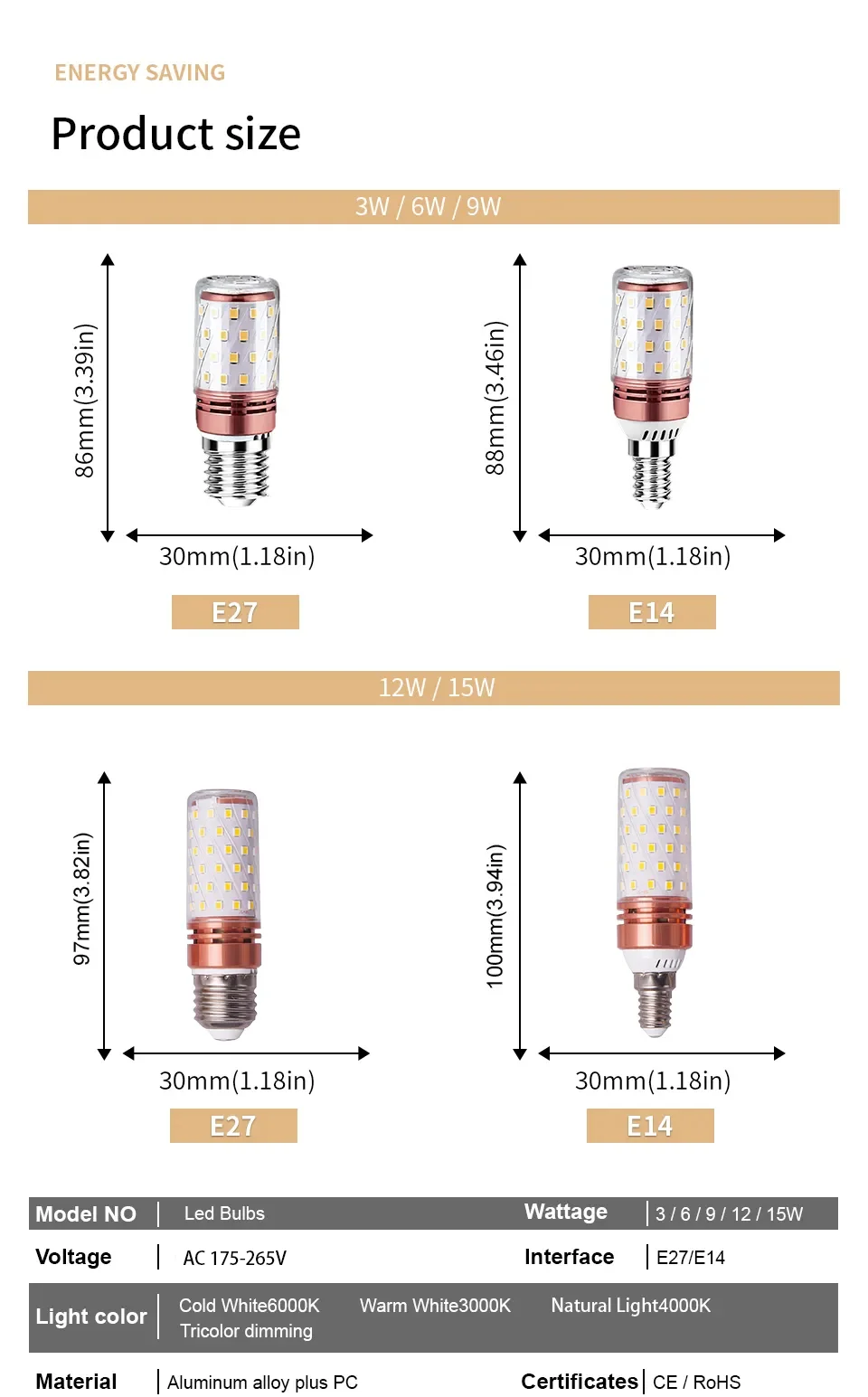 10PCS ข้าวโพดหลอด AC85-265V E27 E14 สกรู 3/6/9/12/15W ง่ายต่อการประกอบและถอดชิ้นส่วนเหมาะสําหรับแสงห้อง จาก 3 รีวิว