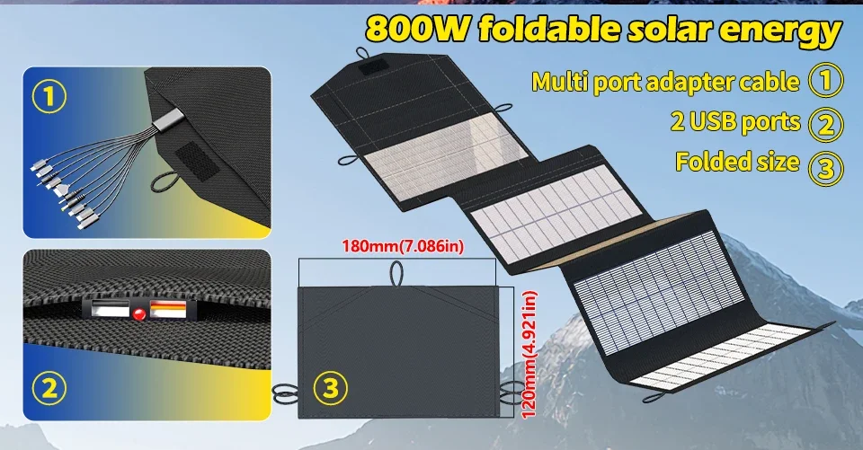 ใหม่ 800W แผงพลังงานแสงอาทิตย์แบบพกพา 6 พับแผงพลังงานแสงอาทิตย์ USB 5V DC Full Time Power แผงพลังงานแสงอาทิตย์แหล่งจ่ายไฟมือถือ