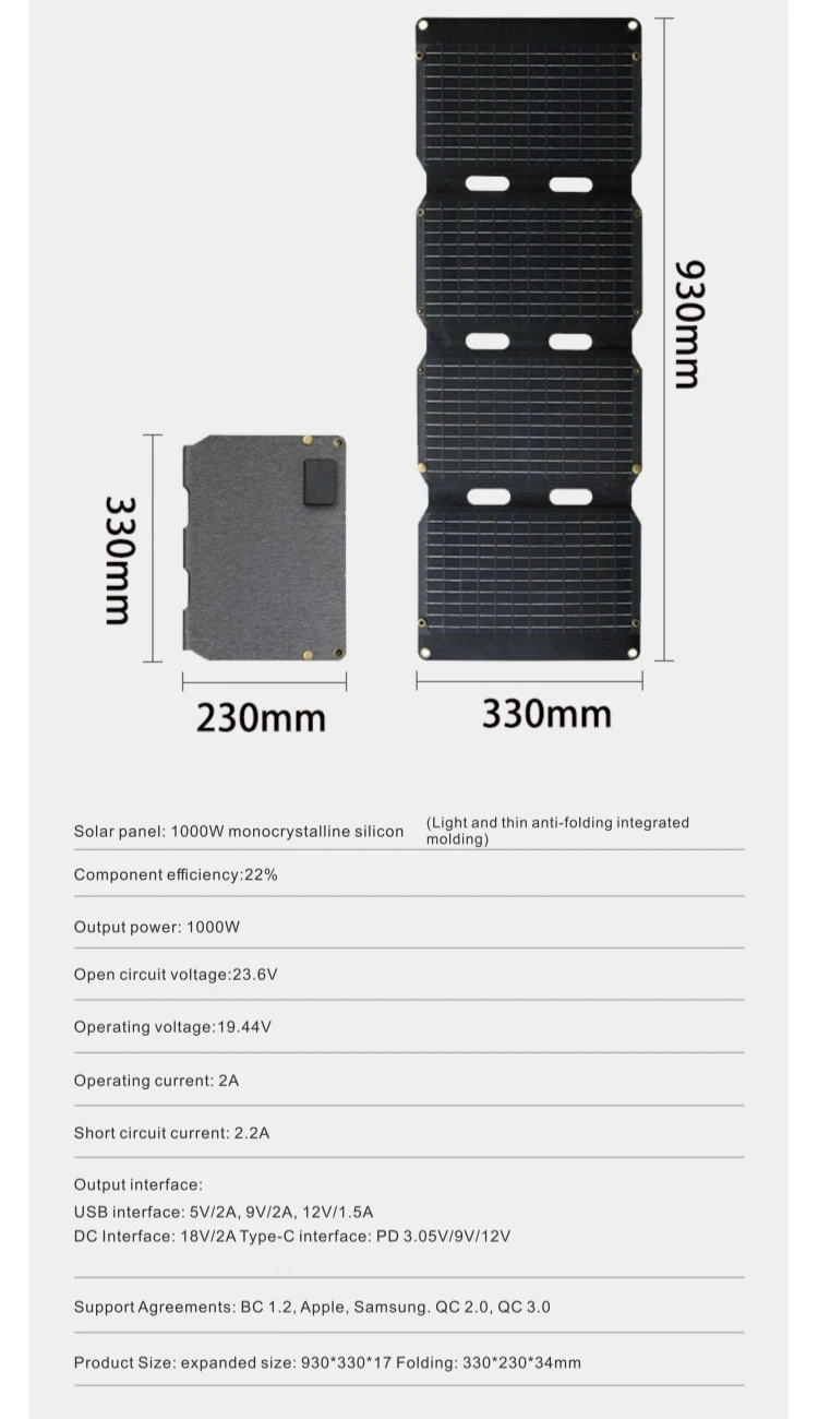 แผงโซลาร์เซลล์พับได้ 1000 วัตต์ แบบพกพา พร้อมช่องเสียบ USB สำหรับชาร์จไฟ ใช้กลางแจ้ง เดินป่า ตั้งแคมป์ เครื่องกำเนิดไฟฟ้า พกพาสะดวก เหมาะเป็นของขวัญคริสต์มาส