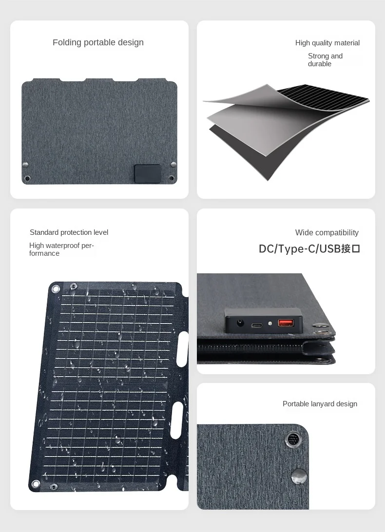 แผงโซลาร์เซลล์พับได้ 20 วัตต์ พร้อมพอร์ต USB สำหรับชาร์จโทรศัพท์มือถือในกรณีฉุกเฉิน เหมาะสำหรับการตั้งแคมป์ ปีนเขา และกิจกรรมกลางแจ้ง