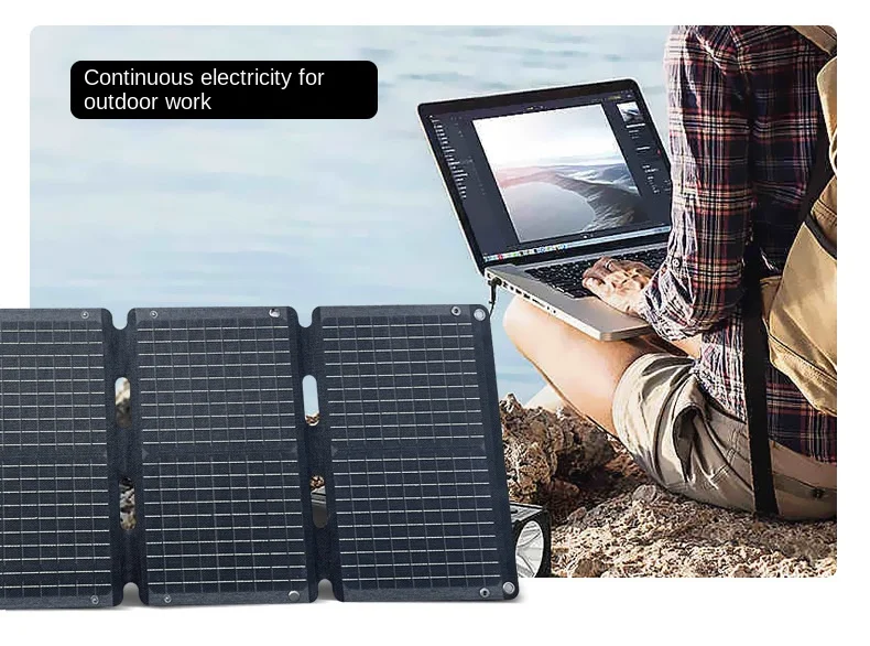 แผงโซลาร์เซลล์พับได้ 4 ทบ 100 วัตต์ แผงโซลาร์เซลล์พกพา 20 วัตต์/ชม. ชาร์จเร็ว USB 5V DC แผงโซลาร์เซลล์แบบเต็มเวลา แหล่งจ่ายไฟเคลื่อนที่