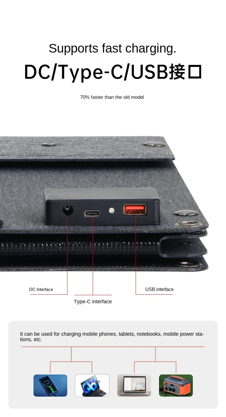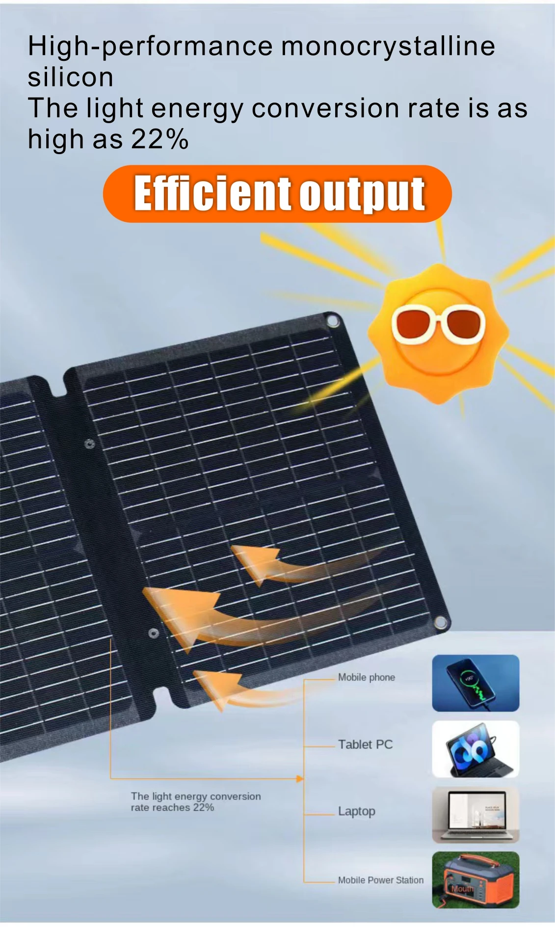30W แผงพลังงานแสงอาทิตย์แบบพกพา Monocrystalline USB + Type-C Output กลางแจ้ง Charger Power Bank สําหรับ Camping โทรศัพท์แท็บเล็ตกล้องแฟน